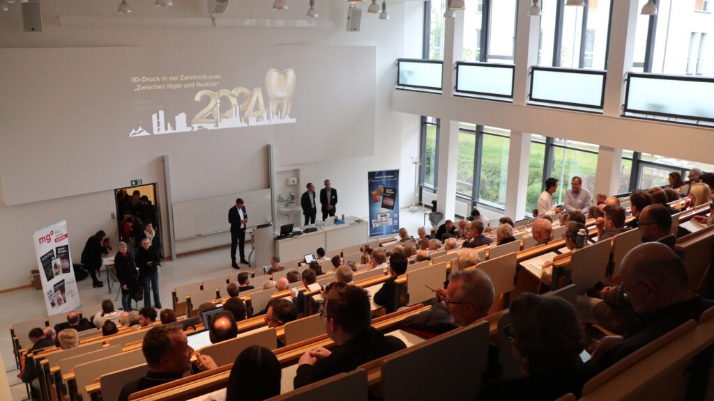 Nach einer kurzen Begrüßung der Teilnehmer durch Michael Dietl, Verlagsleiter der mgo fachverlage, klärten die Referenten in ihren drei Hauptvorträgen über den aktuellen Stand der Entwicklungen im dentalen 3D-Druck auf. Man war sich einig, dass aufgrund der unbestreitbaren Vorteile für eine ökonomisch effiziente Umsetzung komplexer, auch großvolumiger Bauteile in hoher Stückzahl sich die additive Fertigung für die digitale Herstellung von Zahnersatz nahezu aufdrängt. Während Modelle und chirurgische Schablonen in der Zahnarztpraxis immer noch die häufigsten Anwendungen für den dentalen 3D-Druck im Kunststoffbereich sind, geht der Trend erkennbar von extraoral zu intraoral und von temporär zu permanent.