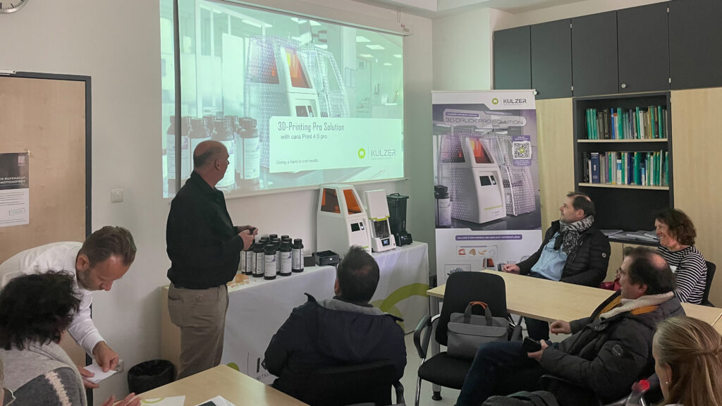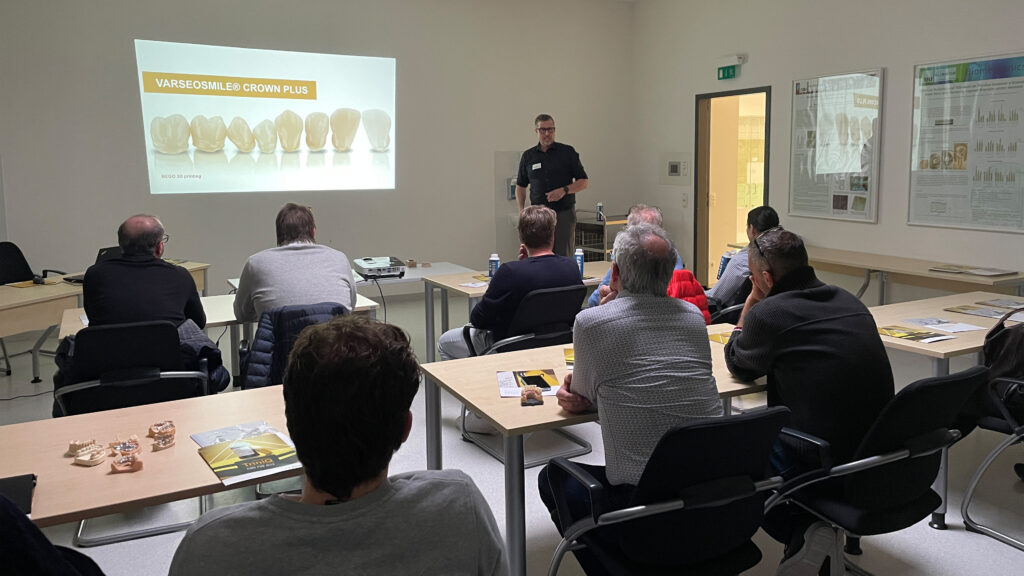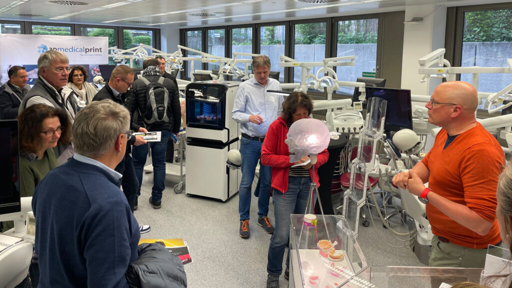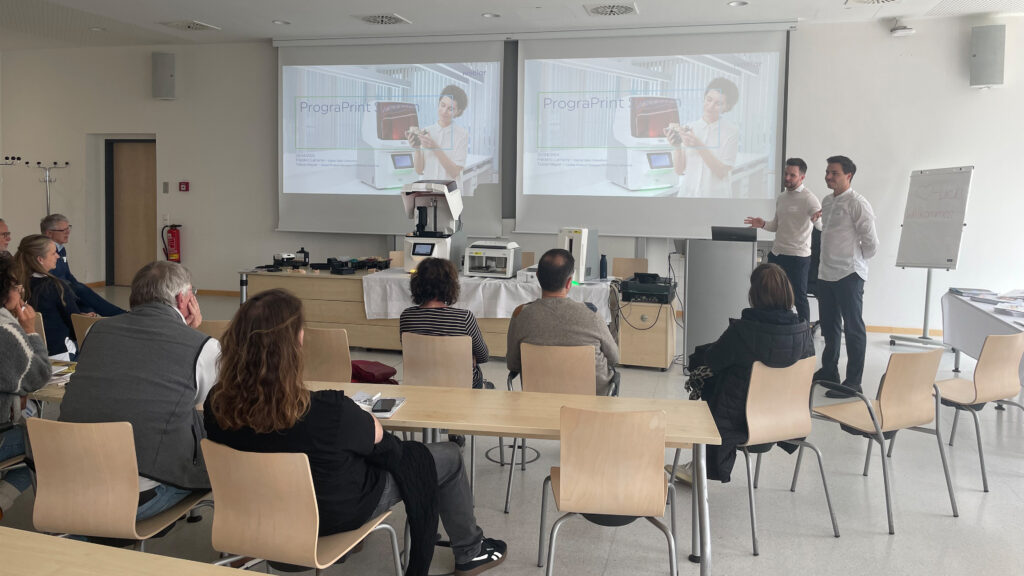 Nach einer bayrischen Mittagspause im Paulaner am Kapuzinerplatz bekamen die Teilnehmer am Nachmittag einen exklusiven Einblick in sechs verschiedene 3D-Drucksysteme. In 30-minütigen Workshops stellten die Industriepartner Bego, Ivoclar, Kulzer, Sprintray und xWerk sowie 3D medical Print gemeinsam mit Stratasys ihren digitalen 3D-Druck-Workflow vor.