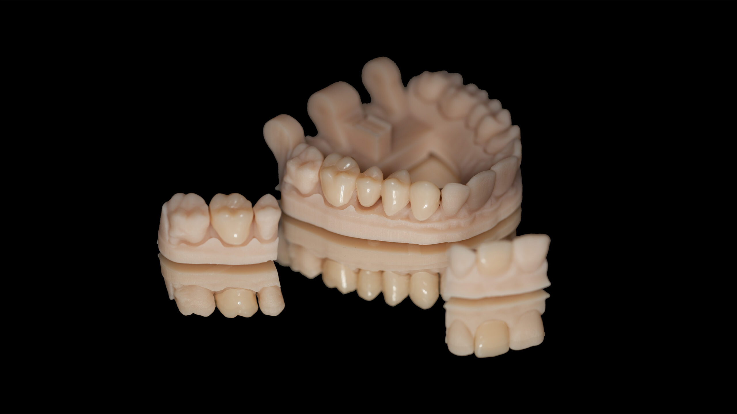 Unter dem Dach der V-Print-Familie bündeln wir aktuell zehn Druckharze für unterschiedliche Indikationen. Das geht von Modellen und therapeutischen Schienen über Bohrschablonen und Prothesenbasen bis zu individuellen Abform- und Funktionslöffeln oder Einprobekörpern für die Total- und Teilprothetik. Aktuell neu hinzugekommen ist V-Print c&b temp zur Herstellung von temporären Kronen und Brücken.