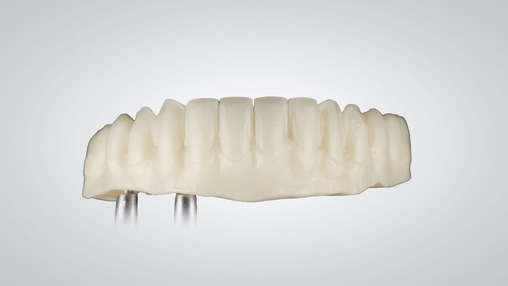 CADdent hat seine Fertigungsverfahren um die hochpräzise HYBRID-Fertigung ergänzt. Diese innovative Fertigungsmethode vereint die Vorteile des LaserMelting-Verfahrens mit der CNC-Technik, und ist somit ideal für teleskopierende sowie okklusal direkt verschraubte Arbeiten geeignet. Besonderes Augenmerk liegt bei der inhouse Weiterentwicklung des Fertigungsverfahren auf der Präzision, so kann CADdent nun eine durchgängige Vestibulärfläche mit einer Dicke von nur 0,4 - 0,5 mm realisieren. Zudem ist CADdent das einzige Fertigungszentrum in Deutschland, das die Bearbeitung von Titan im Hybrid-Verfahren anbietet.
