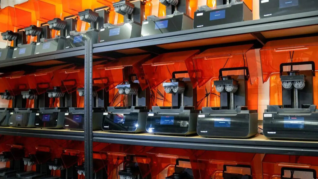 Von den guten Ergebnissen überzeugt, stellte das Unternehmen seine Produktion binnen kürzester Zeit auf die neuste Generation von 3D-Druckern um und erweiterte sie auf 40 Geräte des Typs Form 3, die kaum größer als eine Mikrowelle sind (Abb. 3). Seither produzieren die Drucker rund um die Uhr detailgenaue 3D-Modelle von hoher Qualität. Das Produkt aus dem 3D-Drucker konnte damit überzeugen, dass die Schichten für den Träger am wenigsten spürbar sind. Modern Clear konnte inzwischen schon über 150.000 Zahnschienen produzieren.