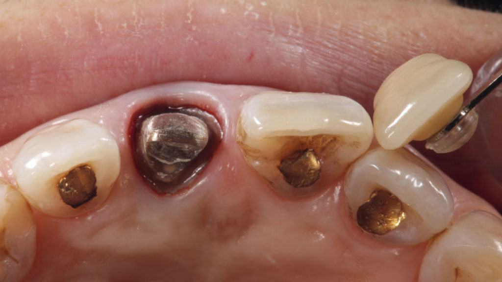 Natürliche Rekonstruktion bei Verfärbungen und Stumpfaufbau aus Metall