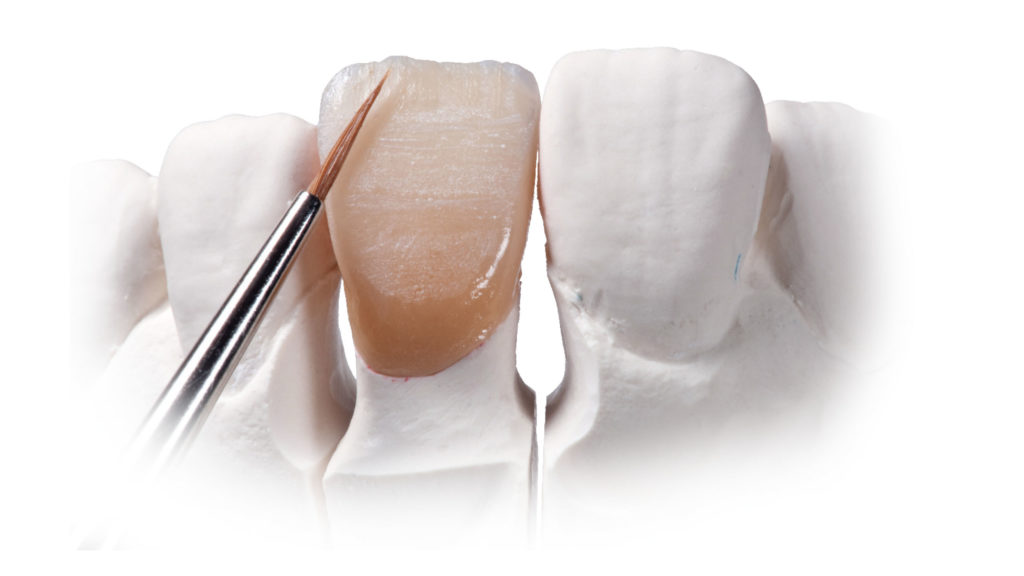 Ästhetische Zone, Farbbestimmung digital, Farbbestimmung visuell, Feldspat-Verblendkeramit, Individualisierung, Keramikschichtung, Metallischer Stumpfaufbau, Morphologie, Verfärbungen, Zirkonoxidgerüst