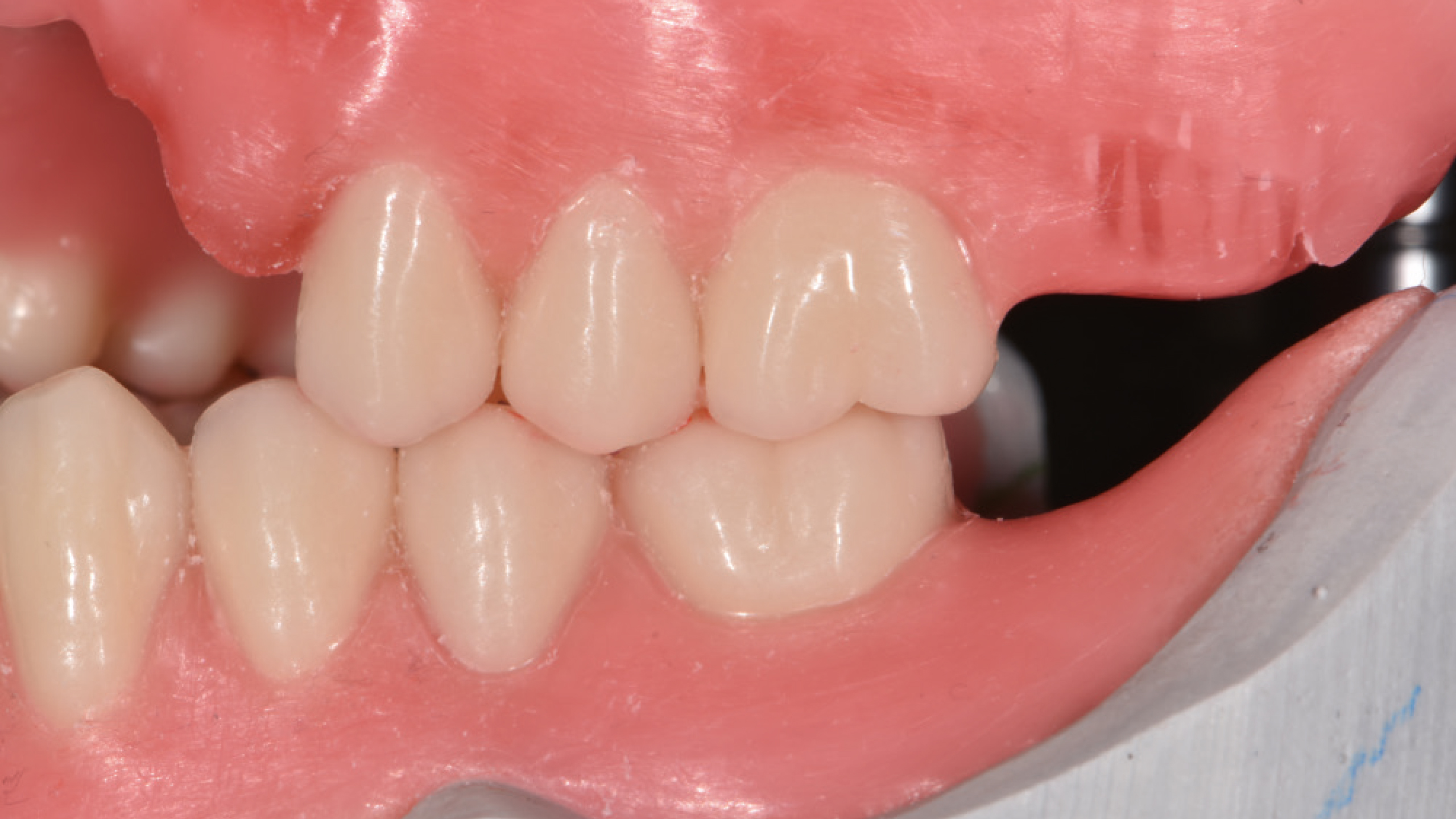 Gleichzeitig ist es jetzt die beste Möglichkeit zu entscheiden, ob die Seitenzähne in einer Zahn-zu-Zahn-Beziehung oder Zahn-zu-zwei-Zahn-Beziehung aufgestellt werden.