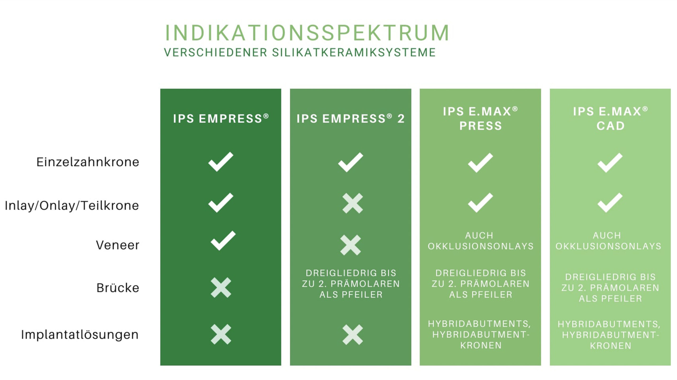 Intensive Forschungsbemühungen führten zur Entwicklung innovativer Produktlinien, welche für verschiedene technische Verarbeitungsmethoden einsetzbar sind sowie kontinuierlich besser werdende mechanische Eigenschaften aufweisen, und damit einhergehend einem breiteren Indikationsspektrum zugänglich sind. 2005 erschien das System IPS e.max Press. Hier können Pressrohlinge aus Lithiumdisilikat nach zuvor erfolgter Lost-wax-Technik in Form gepresst werden.