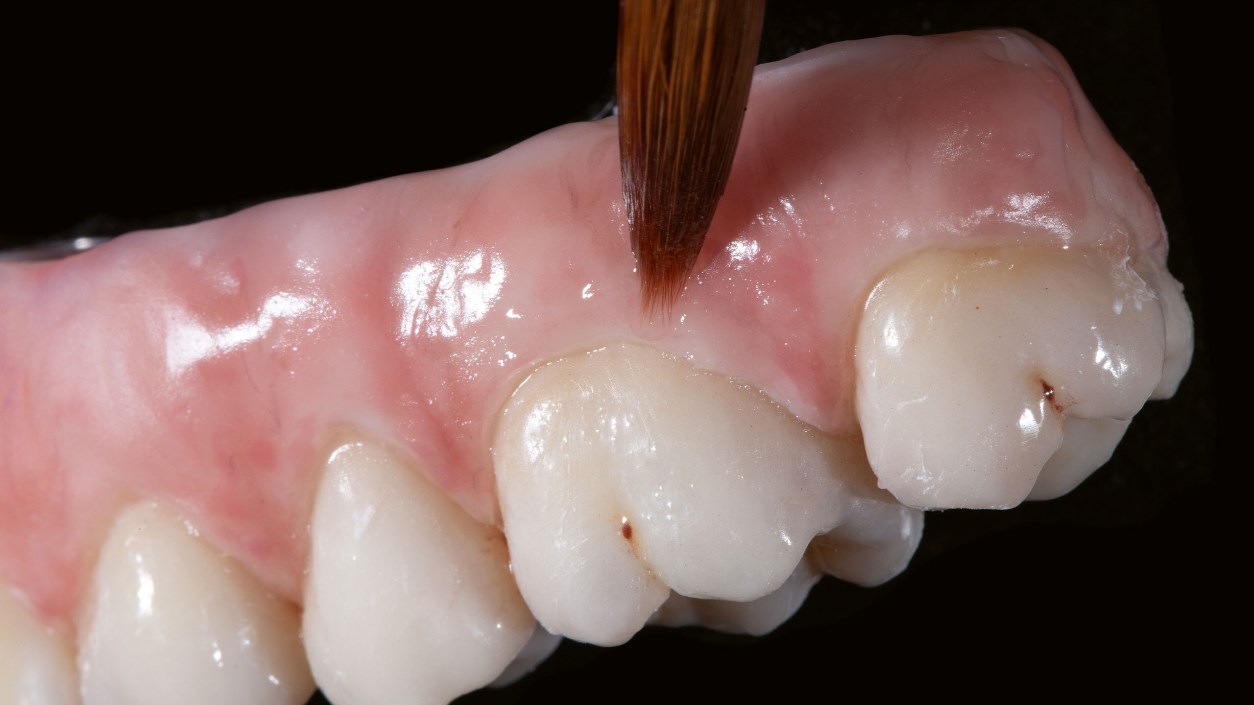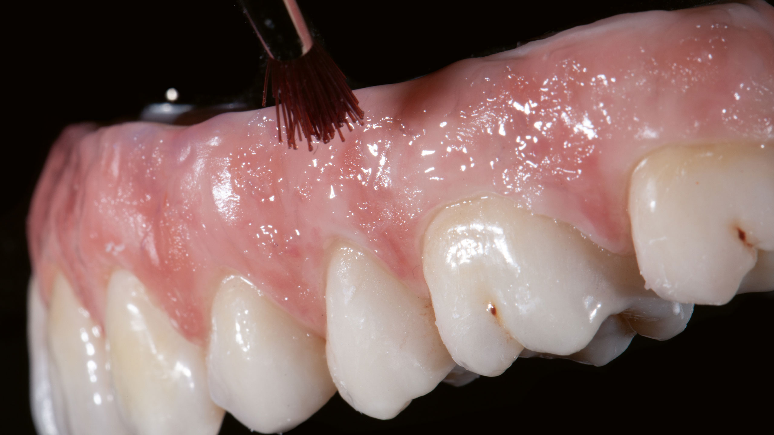 Für die Gestaltung einer lebendig und natürlich wirkenden Oberfläche der Gingiva kamen ebenfalls Structure-Massen zum Einsatz: