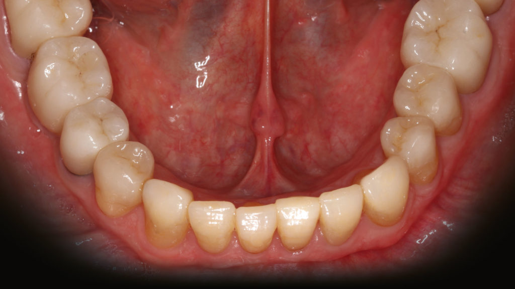 Gesamtrestauration, Minimalinvasiv, Okklusionsausgleich, Präparation, Repositionsveneers, Unterkiefer-Frontzähne, VDO, Veneer, Vollkeramik