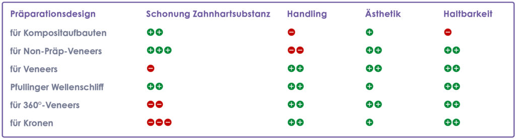 - Nachteil: Invasiver als Non-Präp-Methoden; Grundfarbe eines Zahns kann nicht verändert werden (ggf. vorab Bleaching)