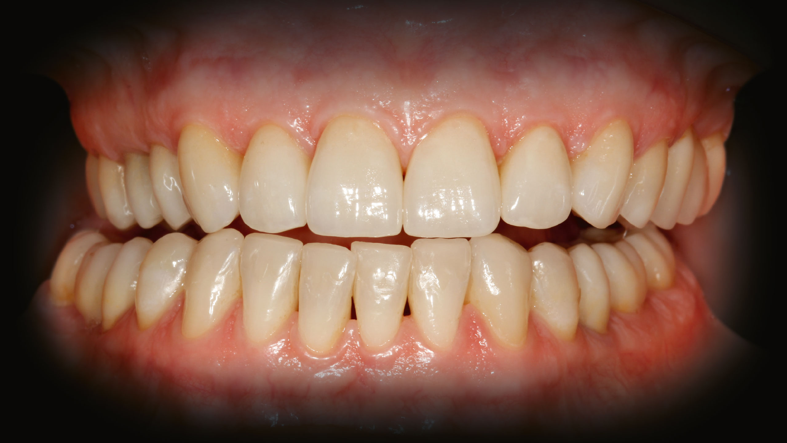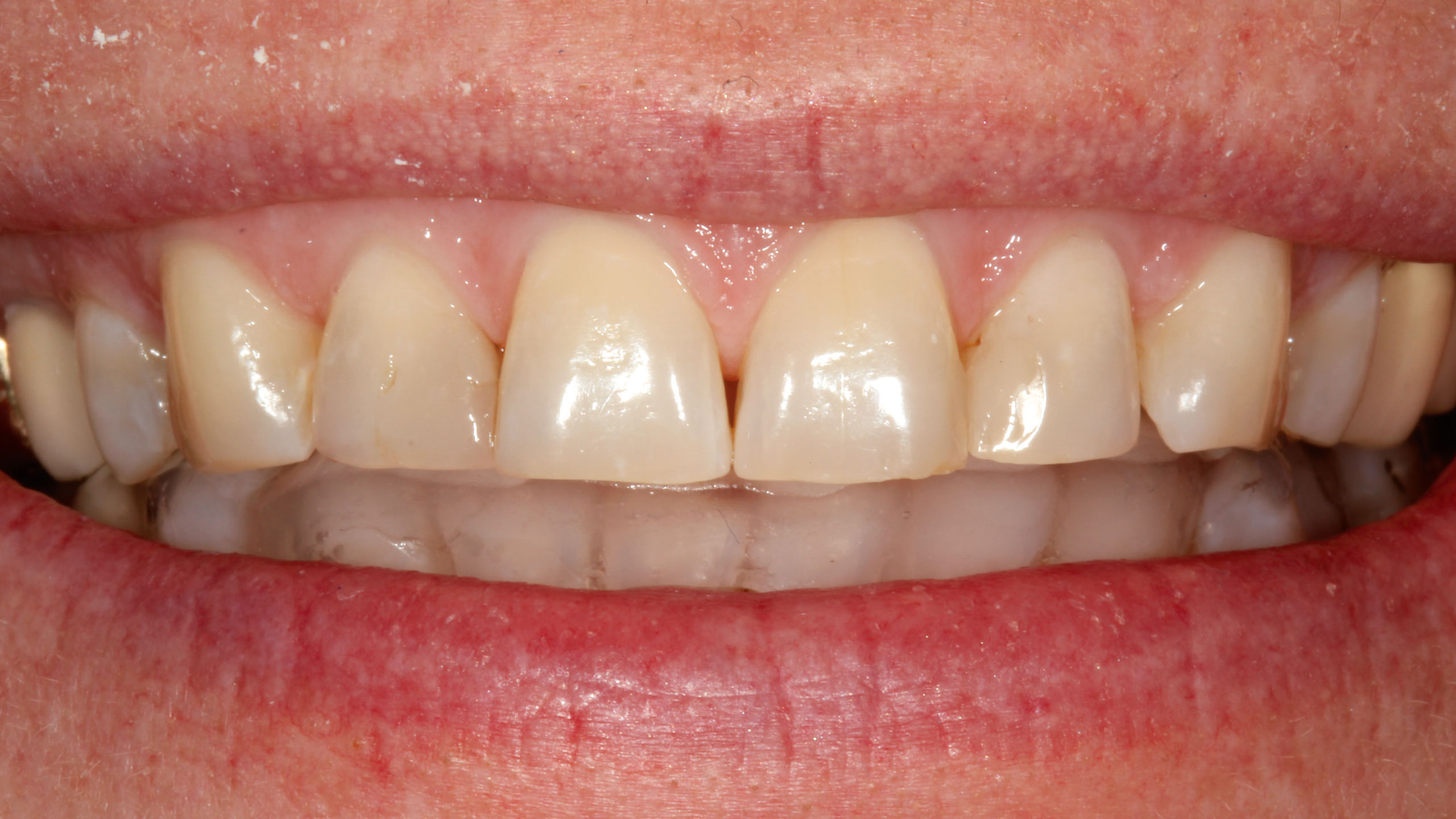 Die Indikationsgebiete von keramischen Veneers haben die Grenze einer rein ästhetisch begründeten Therapie längst überschritten. Aufgrund der Weiterentwicklungen in den Bereichen der keramischen Materialien sowie der Adhäsivtechnik werden Veneers heute oft im Rahmen einer restaurativen Therapie eingesetzt, zum Beispiel Repositionsveneers. Dazu zählt beispielsweise die Abschlussbehandlung funktionstherapeutischer Maßnahmen. Selbstverständlich ist es nicht das generelle Ziel einer funktionstherapeutischen Behandlung, eine restaurative Therapie anzuschließen. Allerdings ist dies als Folgebehandlung in einigen Indikationen nicht auszuschließen, zum Beispiel bei einem erheblichen Verlust von Zahnsubstanz infolge von Biokorrosion oder Bruxismus. Ist nach der erfolgreichen Funktionstherapie eine gleichmäßige okklusale Abstützung nicht gegeben, wird eine restaurative Abschlussbehandlung notwendig. Dafür können nach einer minimalinvasiven Präparation prothetische Restaurationen auf dem Zahn befestigt werden. Eine Alternative mit gewissen Einschränkungen wäre das Tragen einer Okklusionsschiene (Abb. 1).