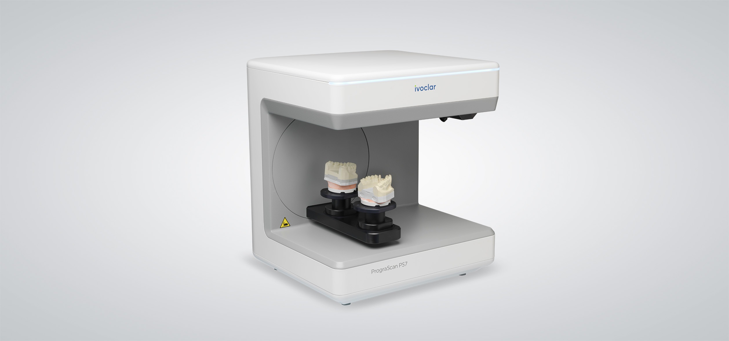 Ausgestattet mit zwei Scan-Tellern, zwei optischen Lichteinheiten und acht Kameras lässt sich der Scan-Auftrag mit nur einem Klick starten. Jegliches Zubehör wird automatisch erkannt. Und – in zwei Minuten stehen die digitalen Modelle in der Design-Software bereit. Im Vergleich zu sequenziellem Scannen ergibt sich so ein deutlicher Zeitgewinn um das rund Dreifache. In Verbindung mit der exocad DentalCAD Software ist der PrograScan PS7 ebenso leicht und intuitiv zu bedienen, wie alle Laborscanner aus der PrograScan-Familie.