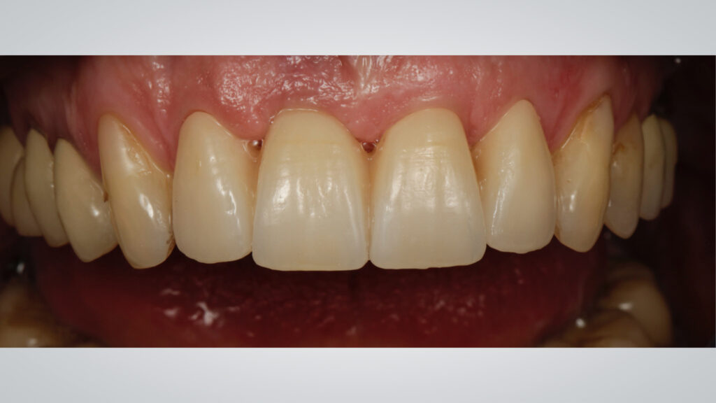 Dem Erarbeiten einer natürlichen Makro- und Mikrotextur folgte der finale Glanzbrand. Die fertigen Restaurationen wurden in der Zahnarztpraxis adhäsiv im Mund verklebt. Ergebnis ist eine Restauration, die sowohl in ihren lichtoptischen Eigenschaften als auch in ihrer Makro- und Mikrotextur natürlich schön ist. Wieder einmal zeigte sich: In der Vollkeramik ist das zahntechnische Modell unser „Best Buddy“. Ohne Modellpräzision und die präzise Oberflächenwiedergabe wäre ein naturnahes Ergebnis im Frontzahnbereich nur schwer zu erreichen.