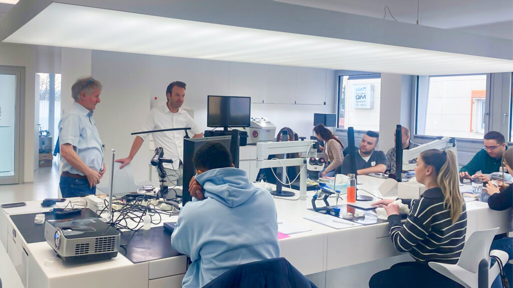 Richtig spannend wurde es für die Finalisten Anfang März. Alle zehn Zahntechnik-Enthusiasten nahmen an einem Hands-on-Kurs mit Ztm. Jochen Peters in Klein-Winternheim teil. Hier wurden wichtige Aspekte der Vollkeramik, der Schichtung (Cerabien ZR, Kuraray Noritake) und der funktionellen Gestaltungskriterien behandelt. Gemeinsam tauchten sie ein in eine Welt der Vollkeramik, in der trotz digitaler Technologien zahntechnische Grundlagen unverzichtbar sind. Und obwohl alle Finalisten zu den Gewinnern zählen, wurden während des Hands-on-Kurses die drei Bestplatzierten des Kuraray Noritake-Awards 2023/2024 gekürt. Gewonnen haben: