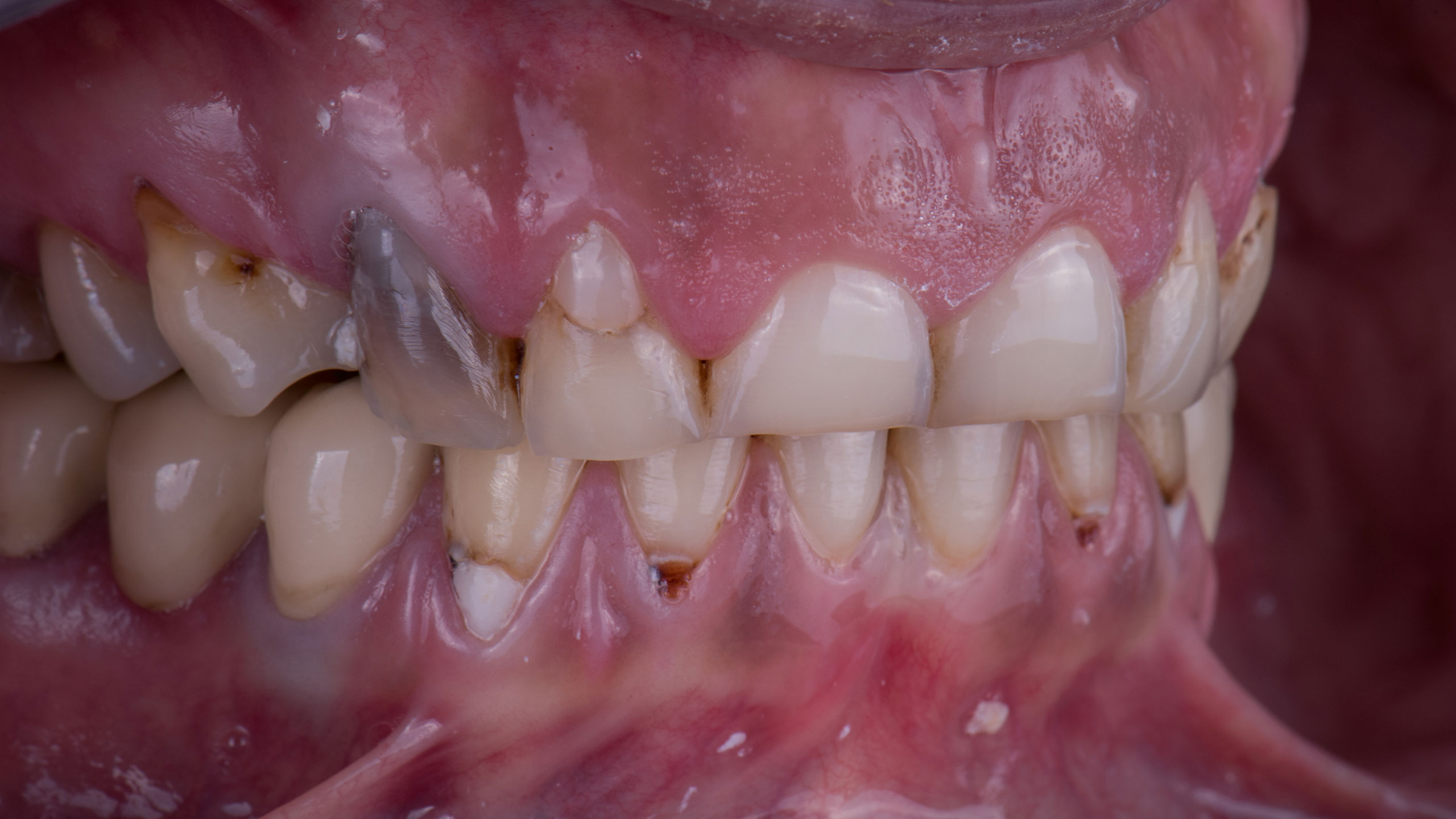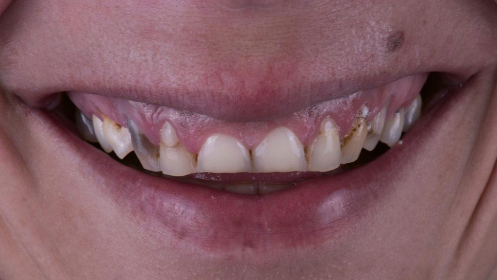 Interessant war, dass die starken Abnutzungen ihrer natürlichen Zähne von der Patientin kein einziges Mal angesprochen wurden.
