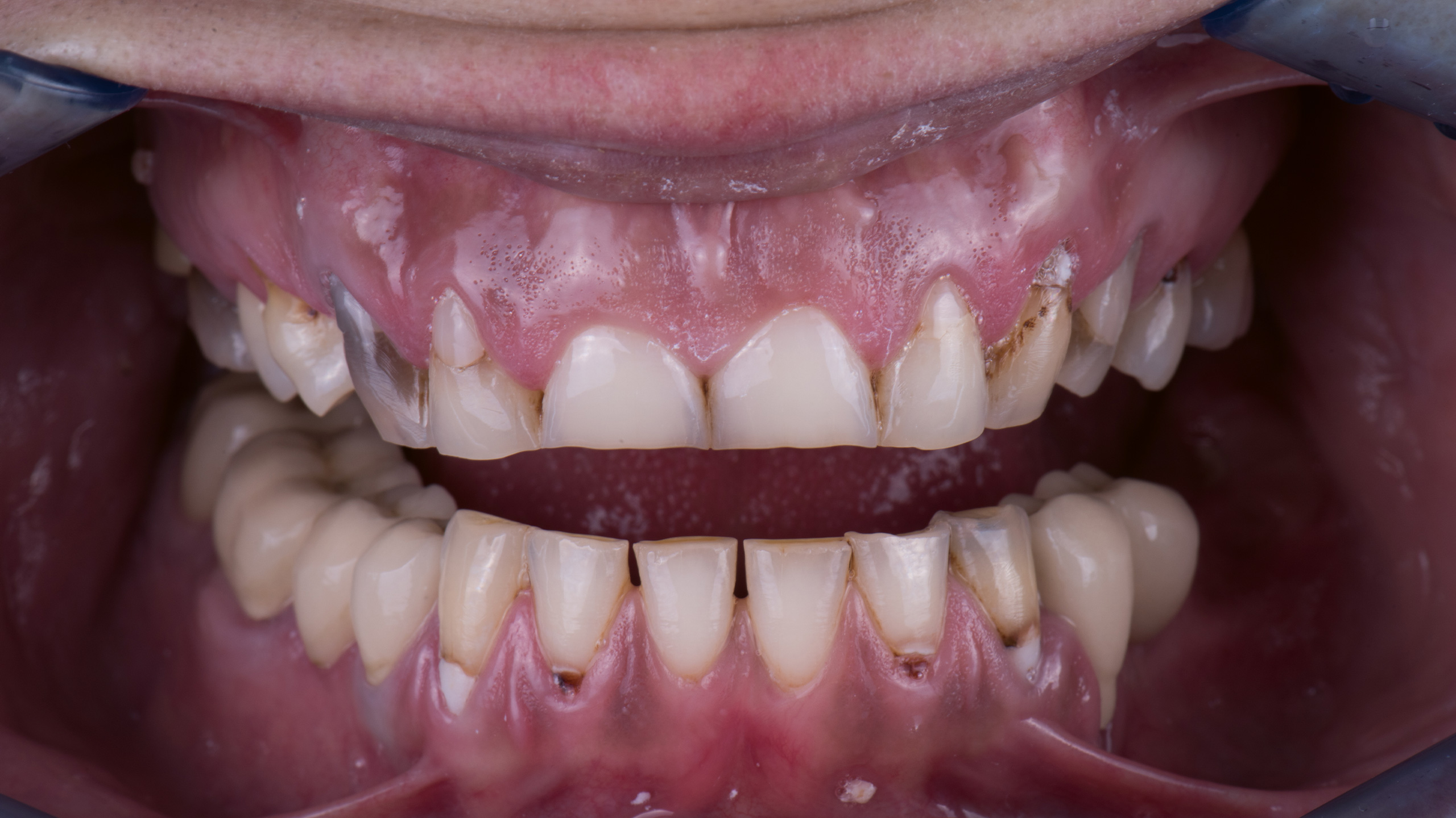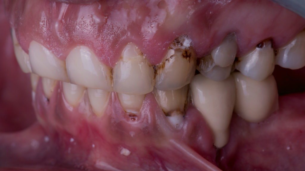 Die Unterkieferzähne, die ebenfalls behandlungsbedürftig waren, sollten zu einem späteren Zeitpunkt gegen die neue Oberkiefersituation angefertigt werden.