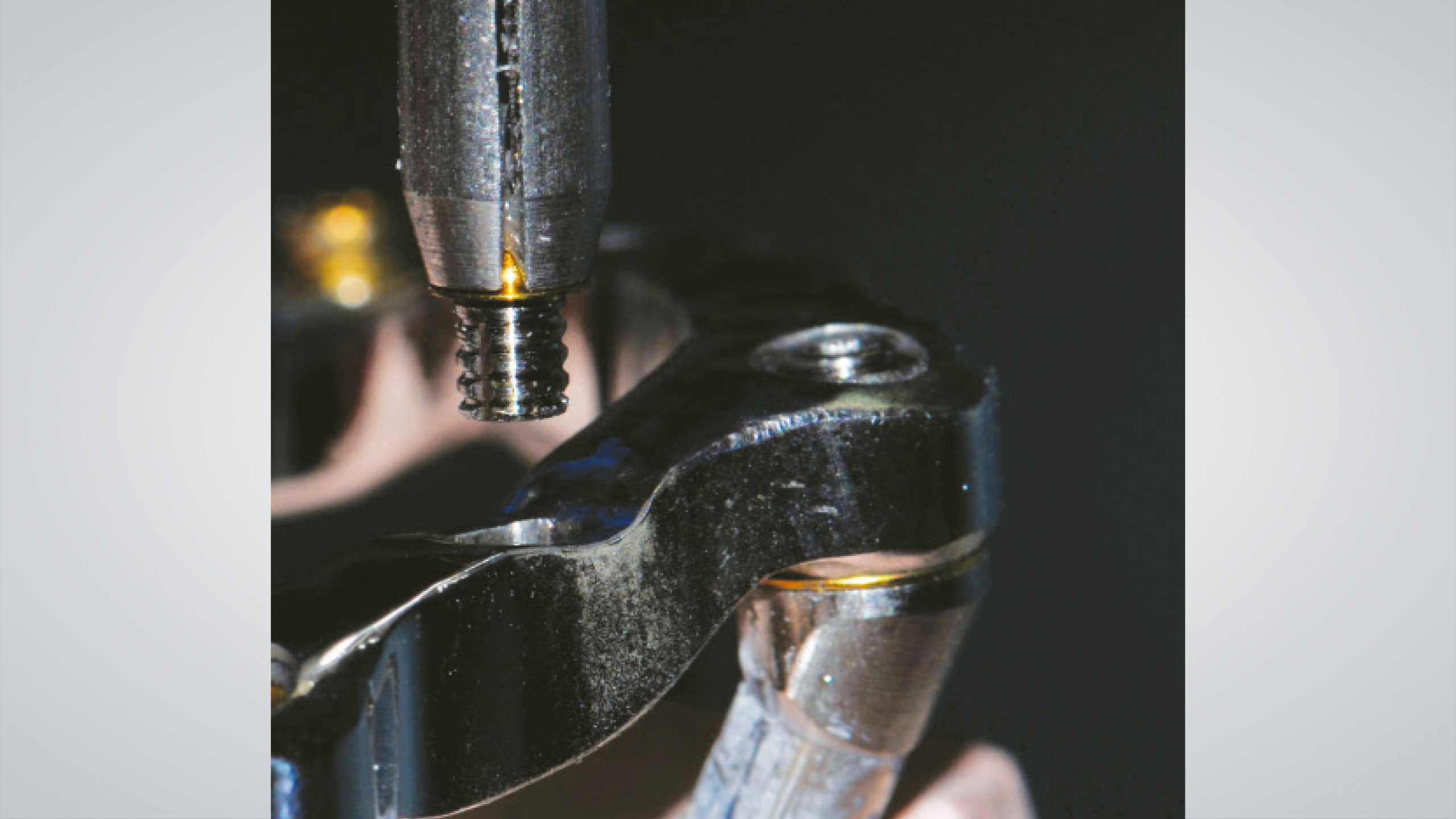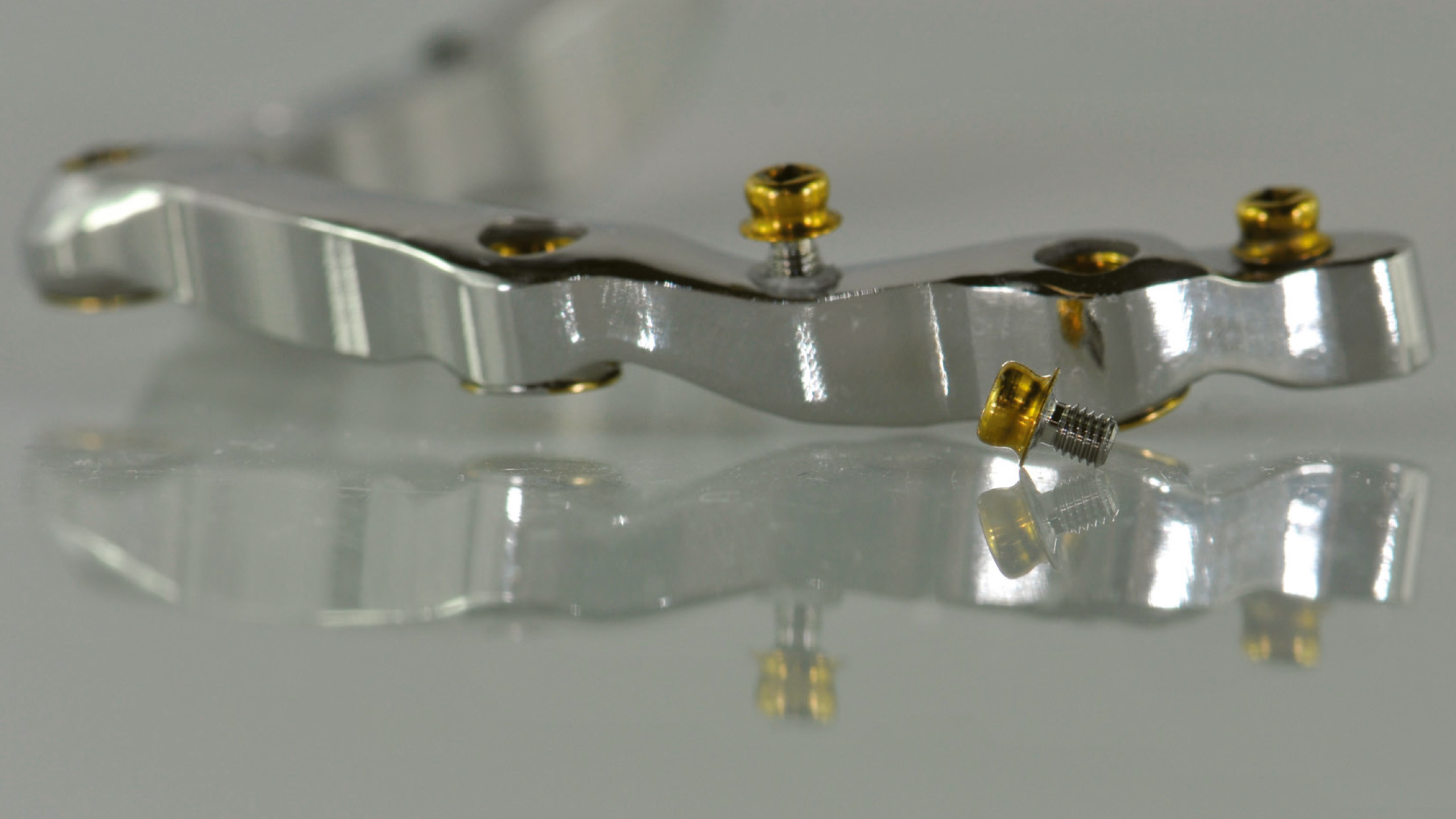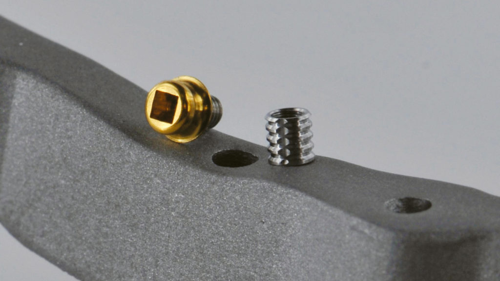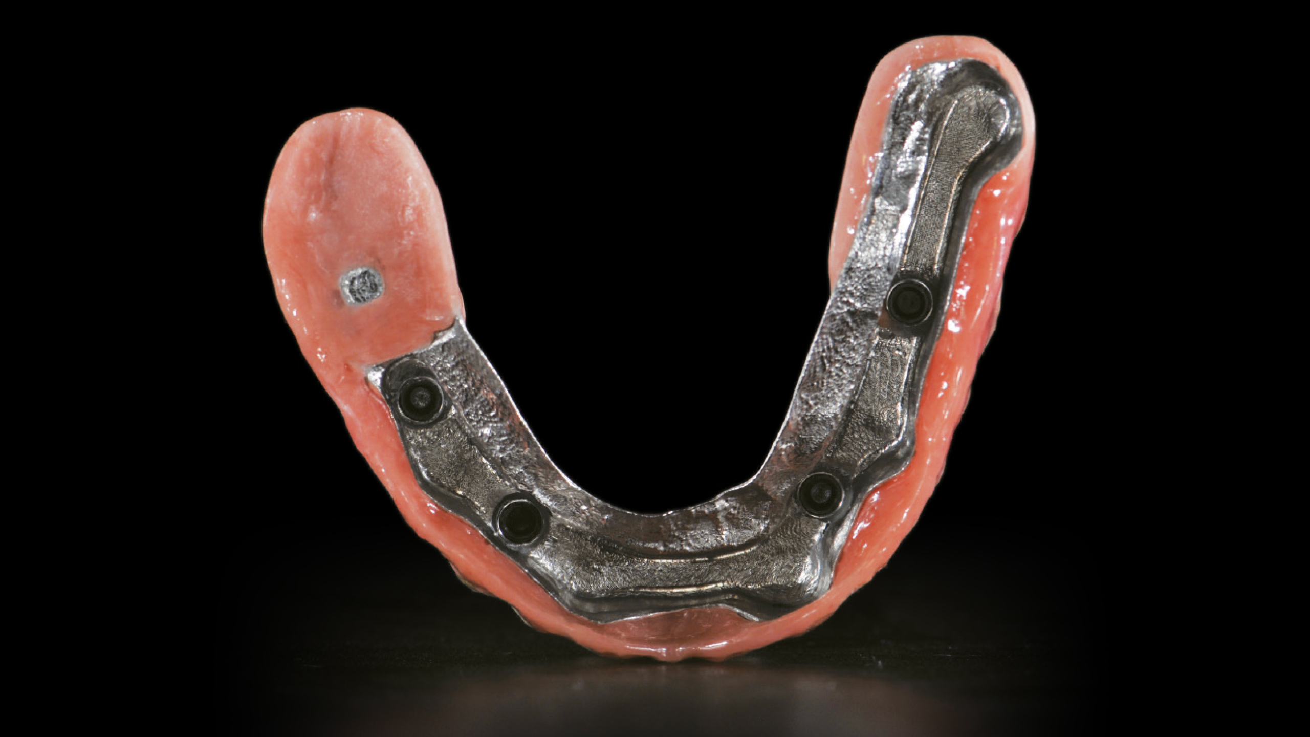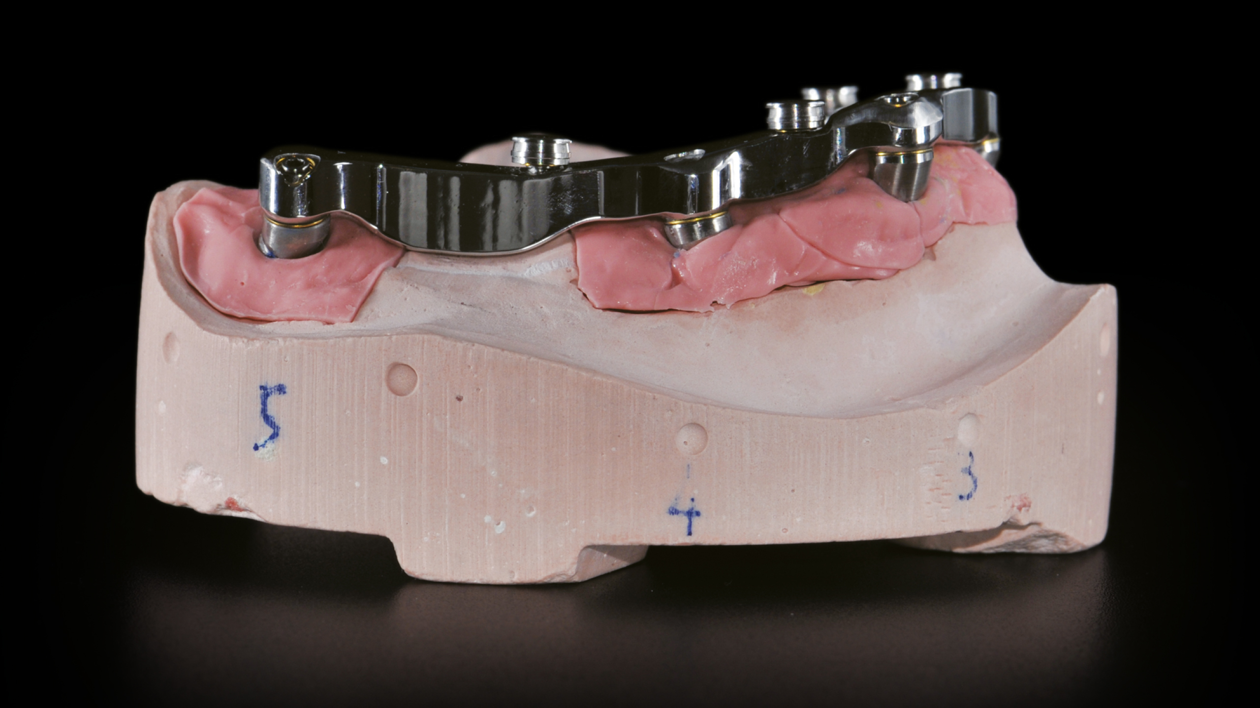 Der Steg wurde intraoral positioniert und anschließend mit Titannitrid (TiN)-beschichteten Schrauben fixiert, die mit