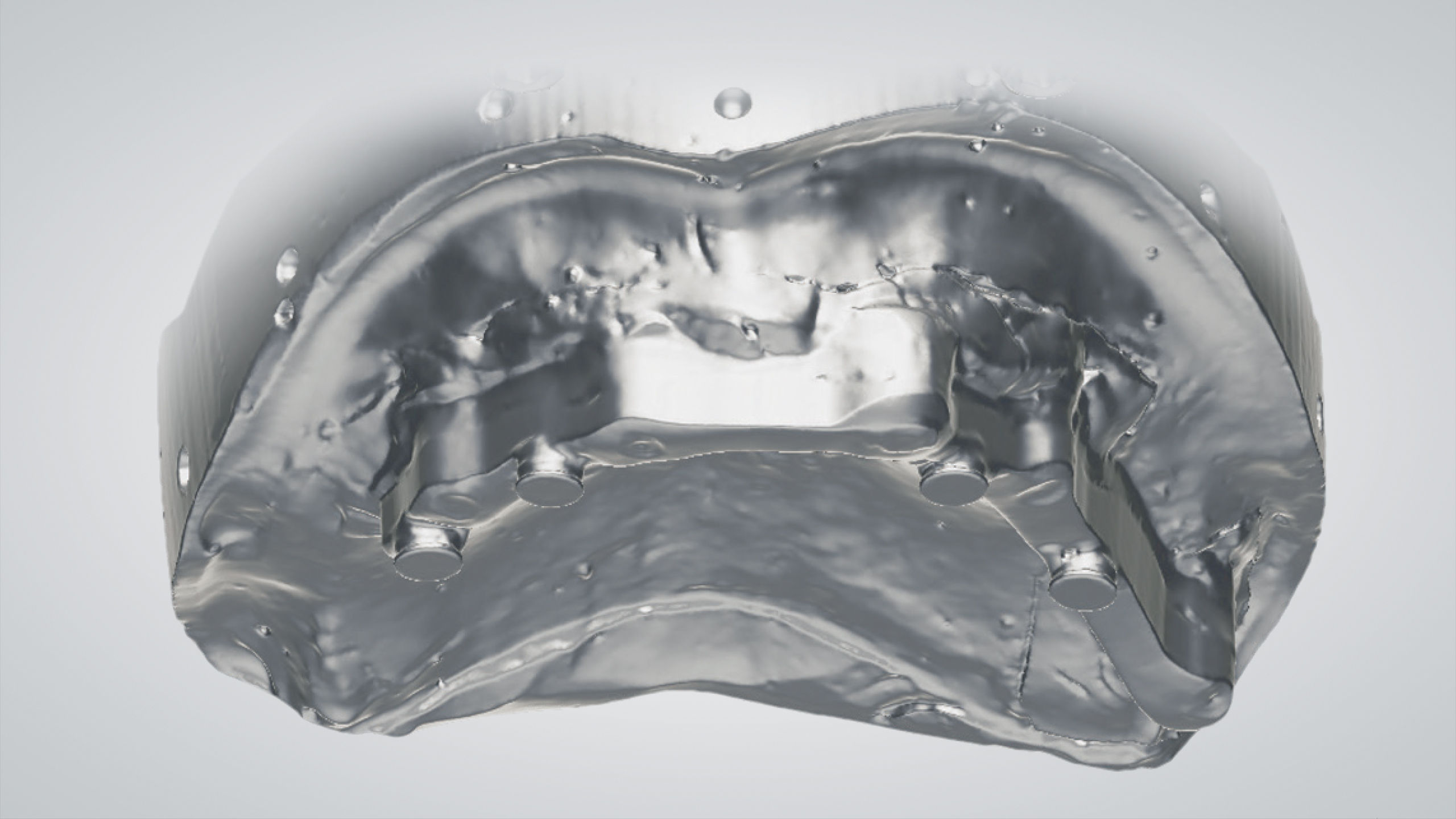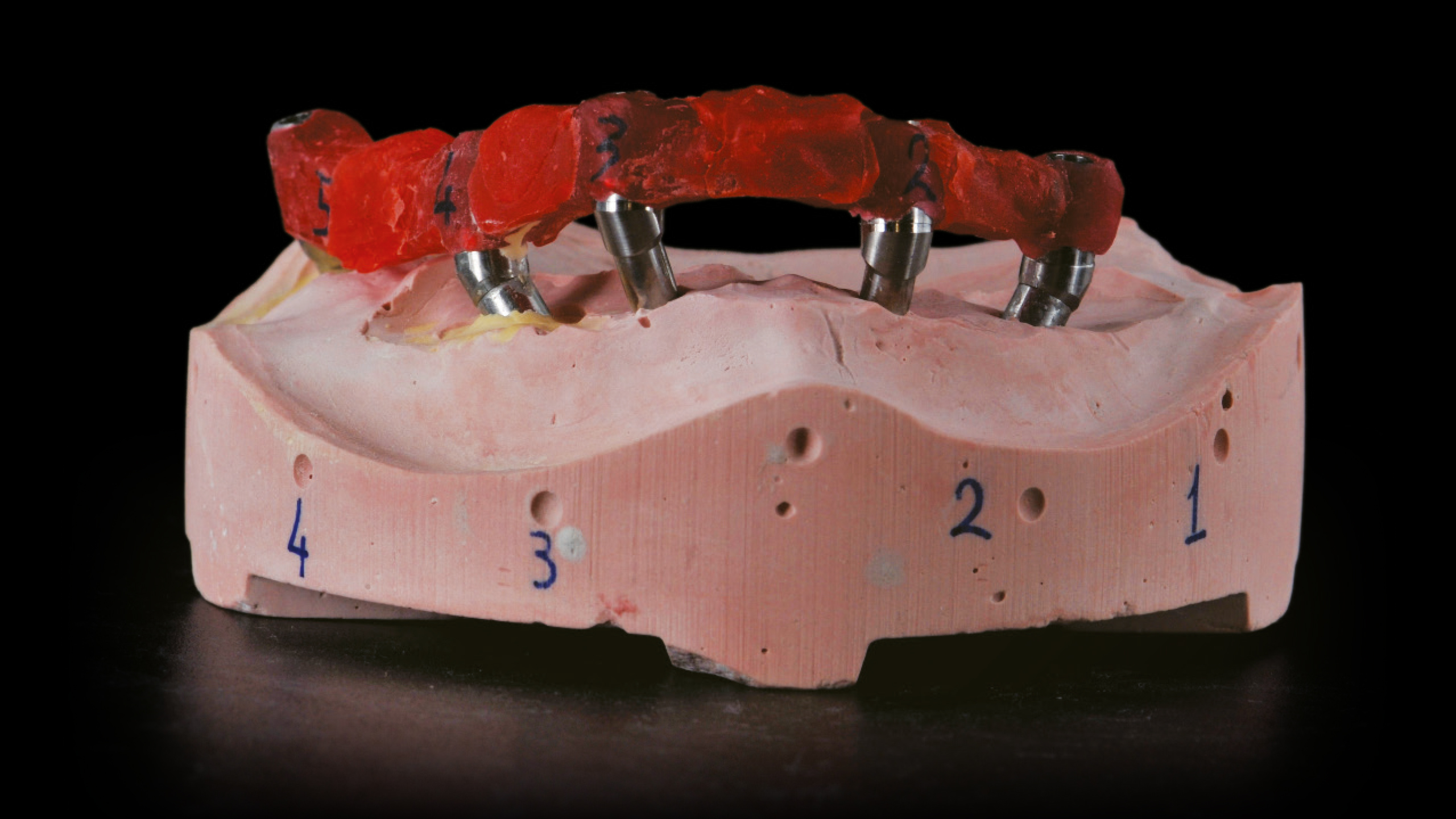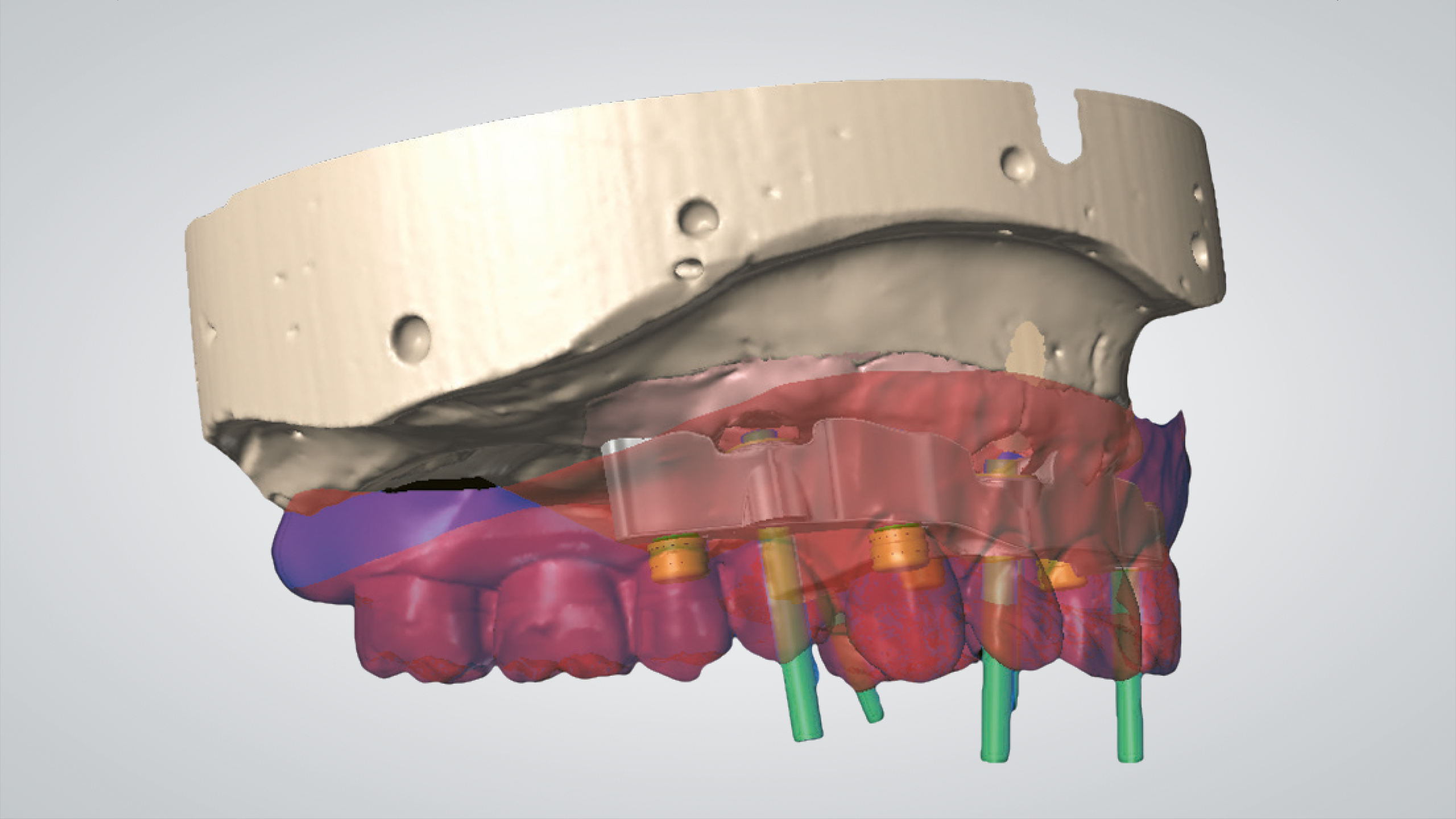 Bei zahnlosen Patienten mit starkem Knochenabbau ist meist eine implantatgetragene Rehabilitation sinnvoll. Bei divergierenden Implantatpositionen erfordert dies häufig einen Ausgleich durch abgewinkelte Abutments. Im vorliegenden Fall bestand die prothetische Lösung aufgrund der starken Knochenresorption in der Herstellung eines verschraubten Stegs mit einer abnehmbaren Prothese. Es wurden innovative digitale Arbeitsablaufprotokolle und CAD-Technologien eingesetzt.