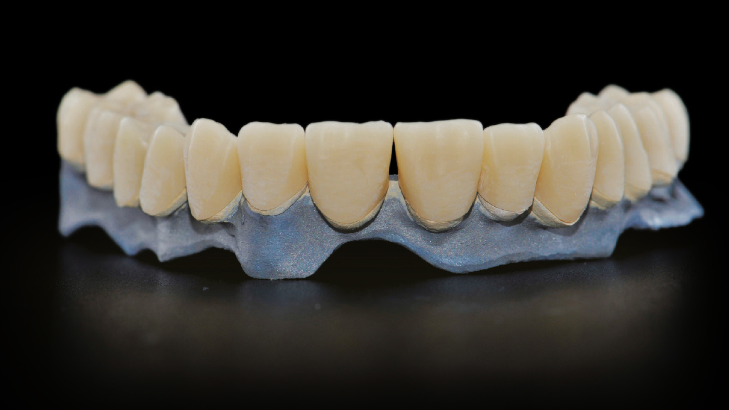 additive Fertigung, Ästhetik, CAD-gefertigtes Mock-Up, CAD/CAM, Multiunit-Abutments, Nanohybrid-Komposit, Prothetik, Stegdesign und -konstruktion, Stegprothese