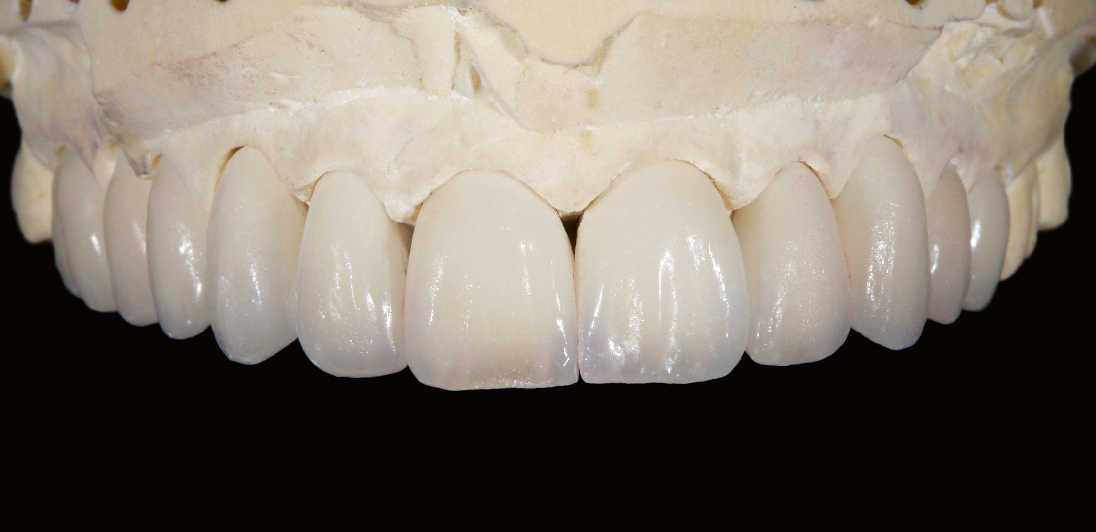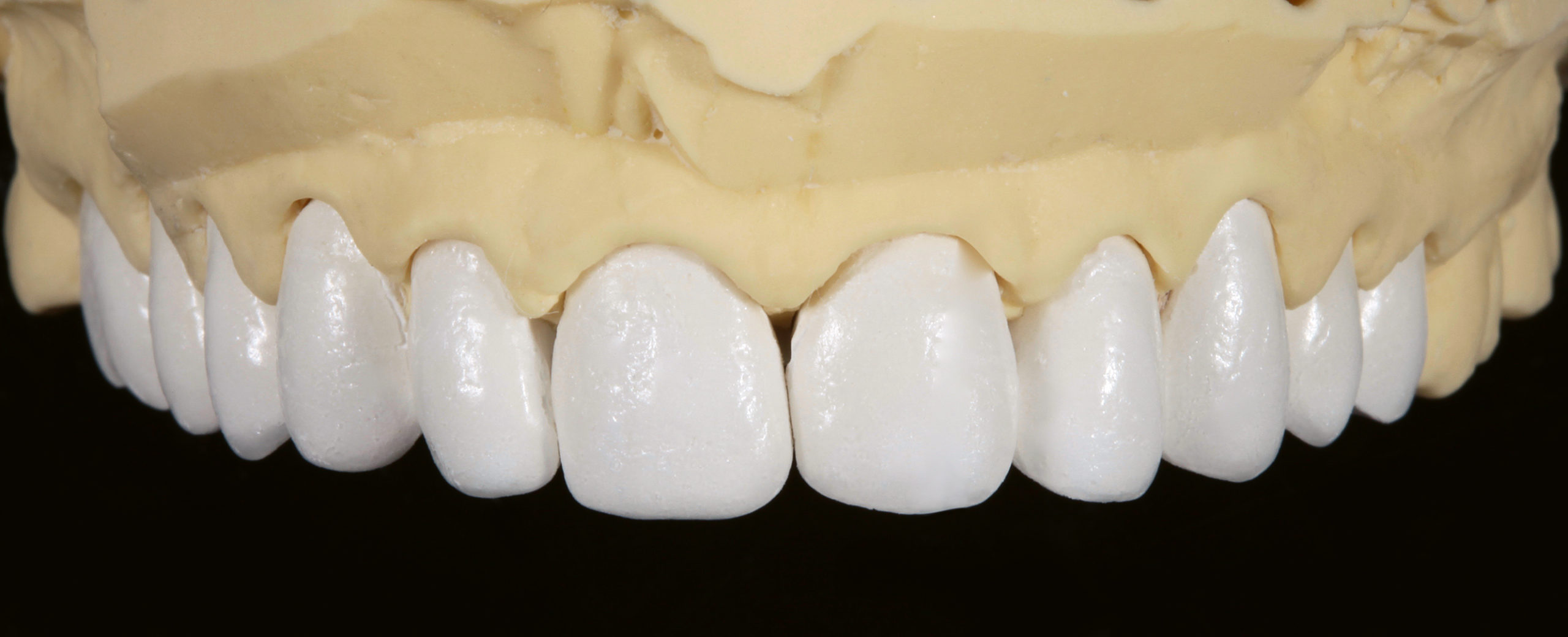 Insbesondere wenn es darum geht, rein ästhetischen Bedürfnissen der Patienten gerecht zu werden, muss das Behandlerteam einen Spagat vollziehen. Da eine ästhetische Korrektur oftmals nicht ohne Präparation möglich ist, muss mit Bedacht und somit möglichst minimalinvasiv vorgegangen werden. Es gilt, mit so wenig Manipulation wie möglich so viel Veränderung wie nötig zu erreichen. Dies hat zur Folge, dass dem Zahntechniker für die Formkorrektur nur sehr wenig Platz zur Verfügung steht – ein Umstand, dem mit entsprechendem Material begegnet werden kann. Die zur Lösung dieses Veneerfalls gewählte natürliche Feldspat-Verblendkeramik Vita VMK Master-Schichtkeramik bringt dafür die nötigen lichtdynamischen Eigenschaften mit, um selbst bei geringsten Platzverhältnissen für ein lebendiges Gesamtbild zu sorgen.