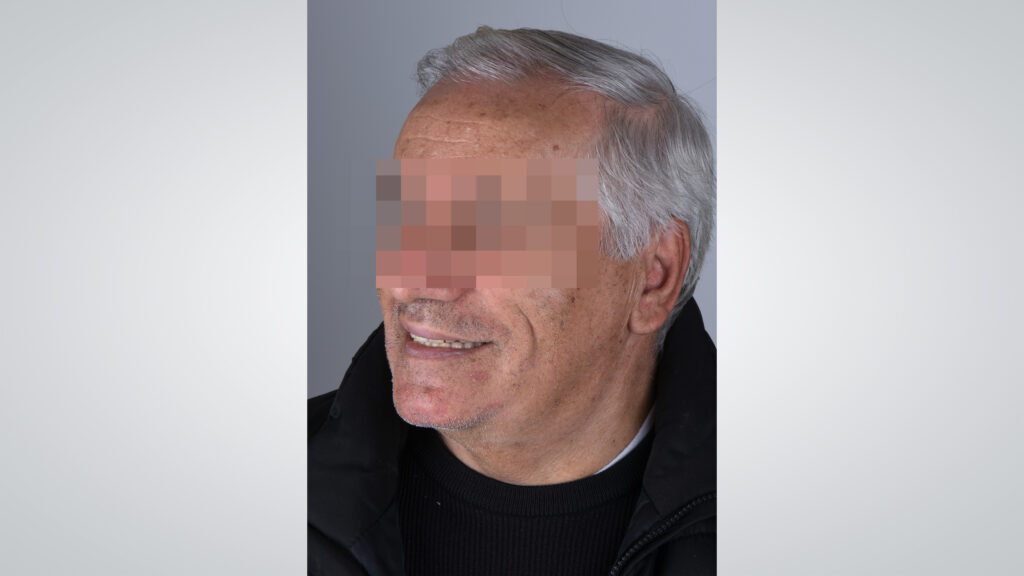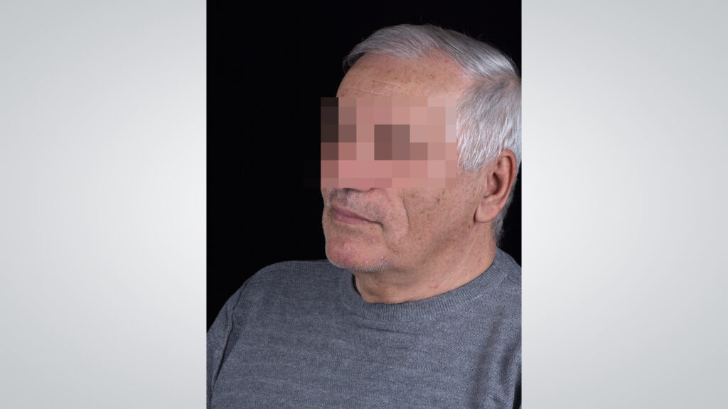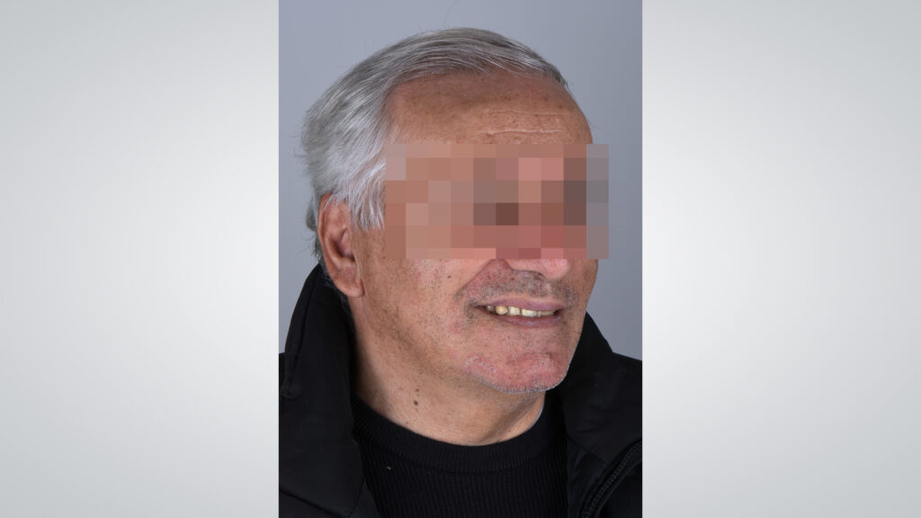 03 - Ein 73-jähriger Patient wurde in der Praxis vorstellig, weil er mit dem Sitz seiner totalprothetischen Versorgung unzufrieden war. Ausgangssituation mit geschlossenem Mund.