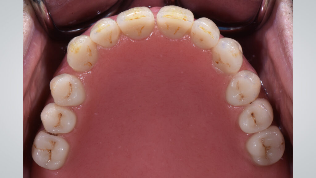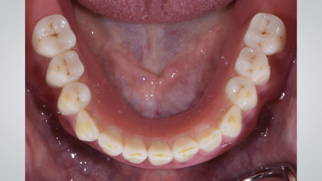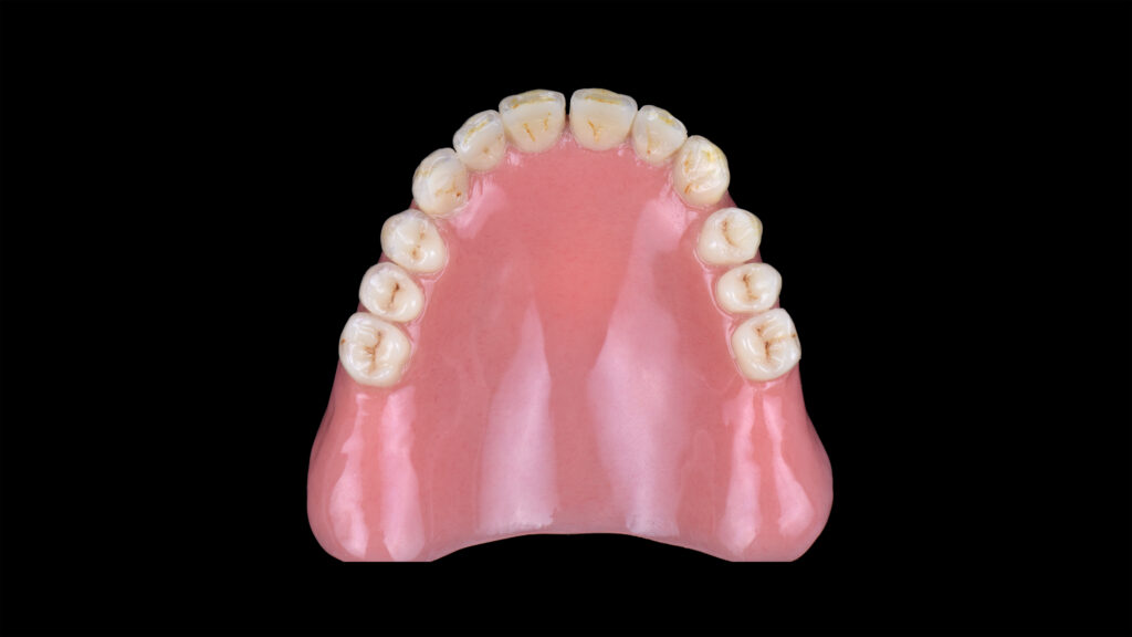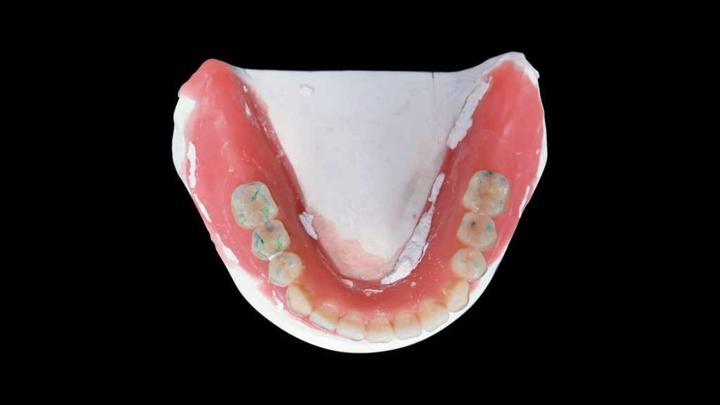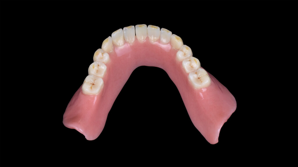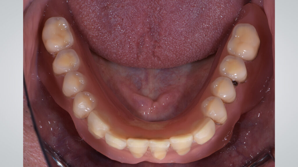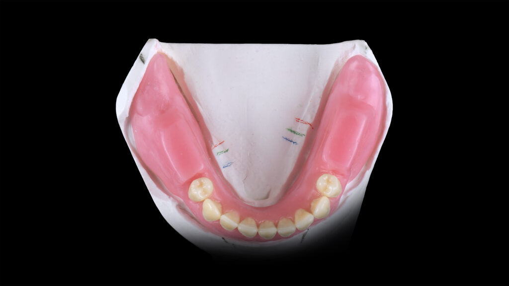 60 - Die eingegliederte Unterkieferprothese in der okklusalen Ansicht