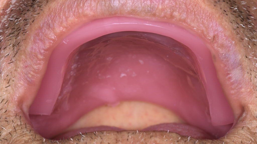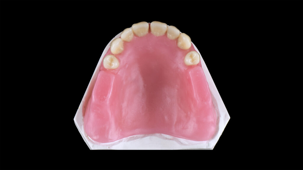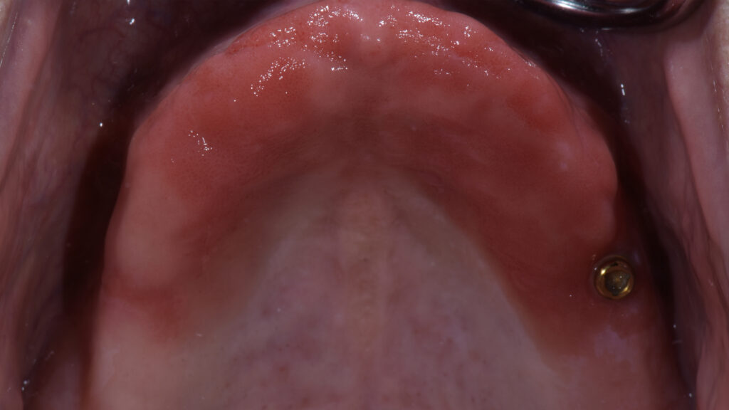 59 - Die eingegliederte Oberkieferprothese in der palatinalen Ansicht