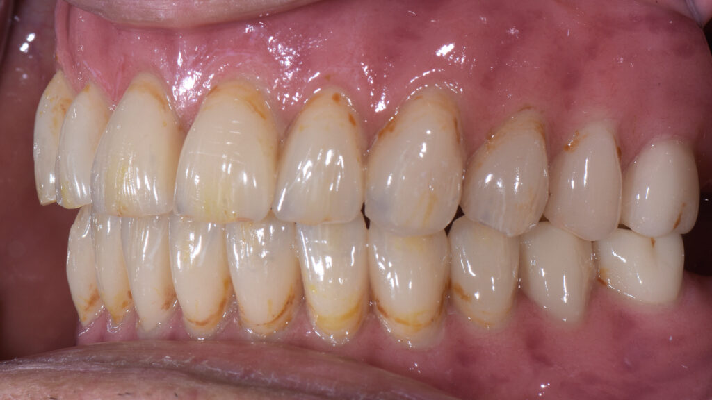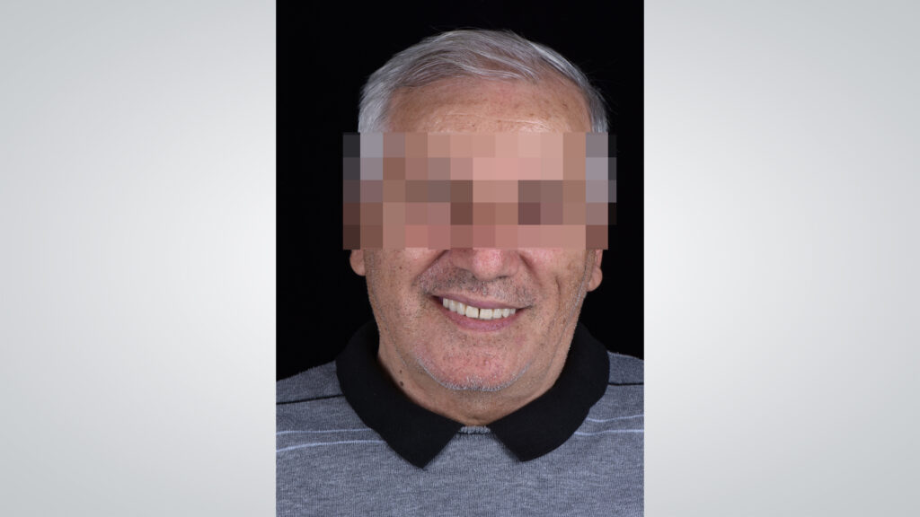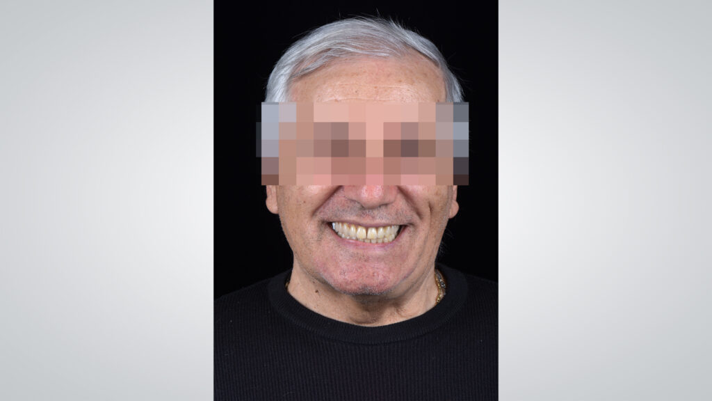 56 - Die eingegliederte totalprothetische Rehabilitation fügte sich harmonisch in das Gesamtbild ein.