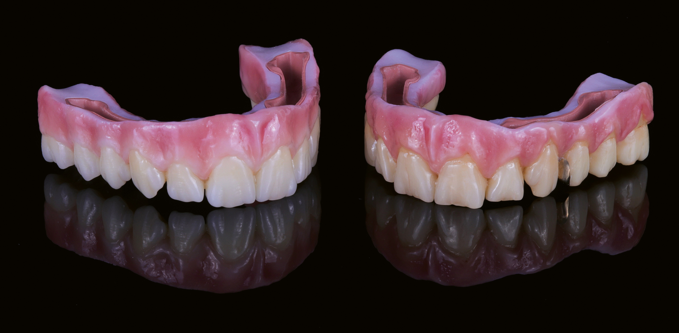 - Lebensechte Darstellung freistehender Zahnhälse in Kombination mit Zirkonoxid und Verblendkeramik