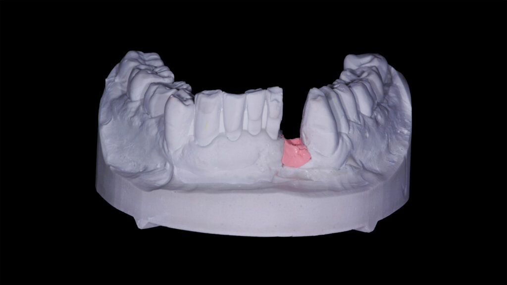02a - Modellsituation mit Darstellung der schmalen Frontzahnlücke vor dem Digitalisieren