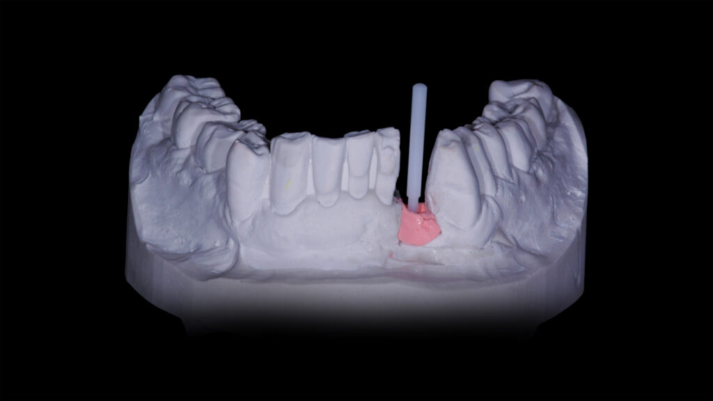 02b - Modellsituation mit Darstellung der schmalen Frontzahnlücke vor dem Digitalisieren