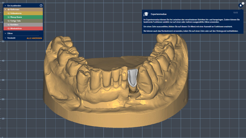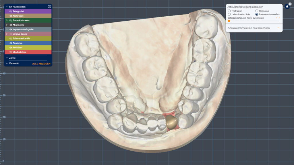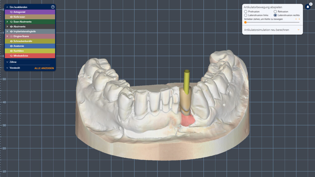 03a - Virtuelles Modell mit Implantatpfosten und einem Kronenvorschlag