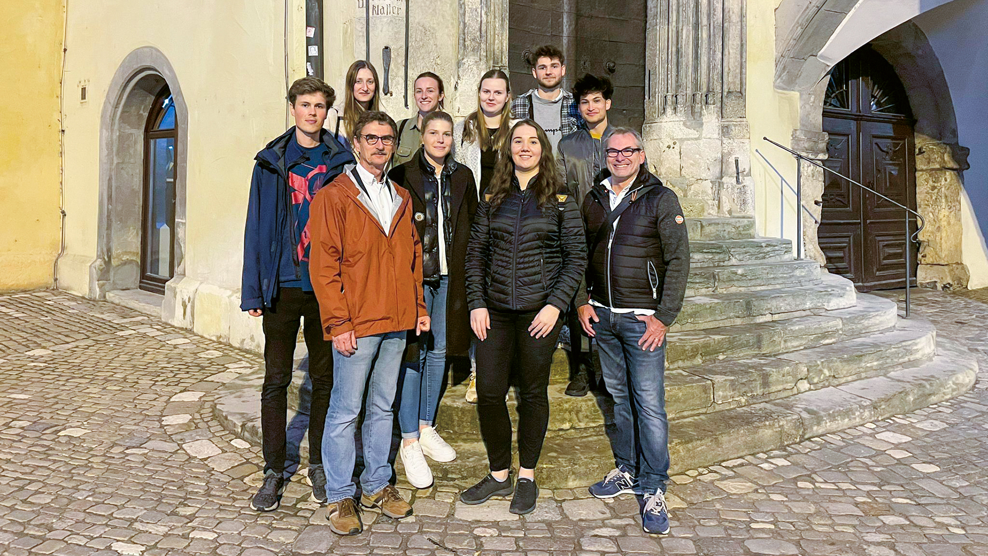 Den Höhepunkt bildete eine amüsante Schauspieleinlage von „Sir George Etherege“, einem Gesandten des Englischen Hofes, der zur Zeit des Immerwährenden Reichtages die britische Krone in Regensburg vertrat. Nach diesem Ausflug ins Mittelalter ruhten sich die Teilnehmer im Hotel aus, denn am nächsten Tag ging es um 7:30 Uhr im städtischen Zahnlabor der Berufsschule II wieder an die Arbeit.