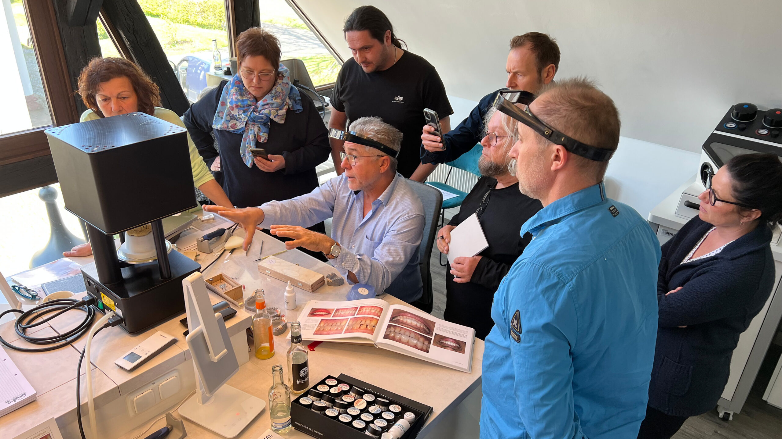 Am 21. April 2023 fand zum ersten Mal der Kurs des Zahntechnikmeisters und Experten Axel Seeger im Eisenhammer Schulungszentrum im Wesertal statt. „Make it your own Monolithic Way“ lautet der Titel des Kurses. Unter dem Motto „Form, Oberfläche und Ästhetik – Farbe und ‚Tiefe‘ nur gemalt“ referiert der Zahntechnikmeister und Experte auf dem Gebiet der Bereiche Maltechnik, Ästhetik, Schichttechnik, Form und Oberfläche vor den Teilnehmenden.
