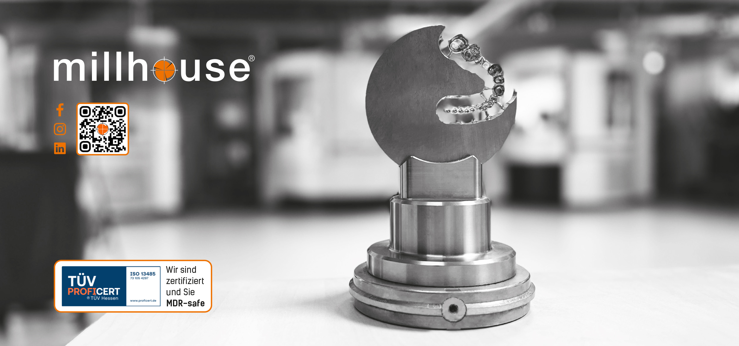 Das millhouse ist ein nach DIN EN ISO 13485 zertifiziertes Technologiezentrum, das sich auf die Fertigung von Halbzeugen, der Vertrieb verschiedener Scan- und CAD-Systeme im Labor sowie Software-Schulungen (3shape/exocad) in der Dentalbranche spezialisiert hat. Gefertigt werden kann aus nahezu allen Materialien und auf Basis fast aller Indikationen. Sonderlösungen sind unsere Spezialität. Die Veredelung und Fertigstellung der Arbeiten übernehmen Zahntechniker in gewerblichen oder Praxislaboren. Hochwertige Produkte, innovative Fertigungsprozesse und selbst entwickelte Systeme, die kontinuierlich weiterentwickelt werden, haben für das millhouse größte Bedeutung. Dabei werden Qualität und Einfachheit bestmöglich miteinander verbunden. Der maximale Nutzen für jeden einzelnen Kunden ist das oberste Ziel für das qualifizierte und kompetente millhouse-Team.