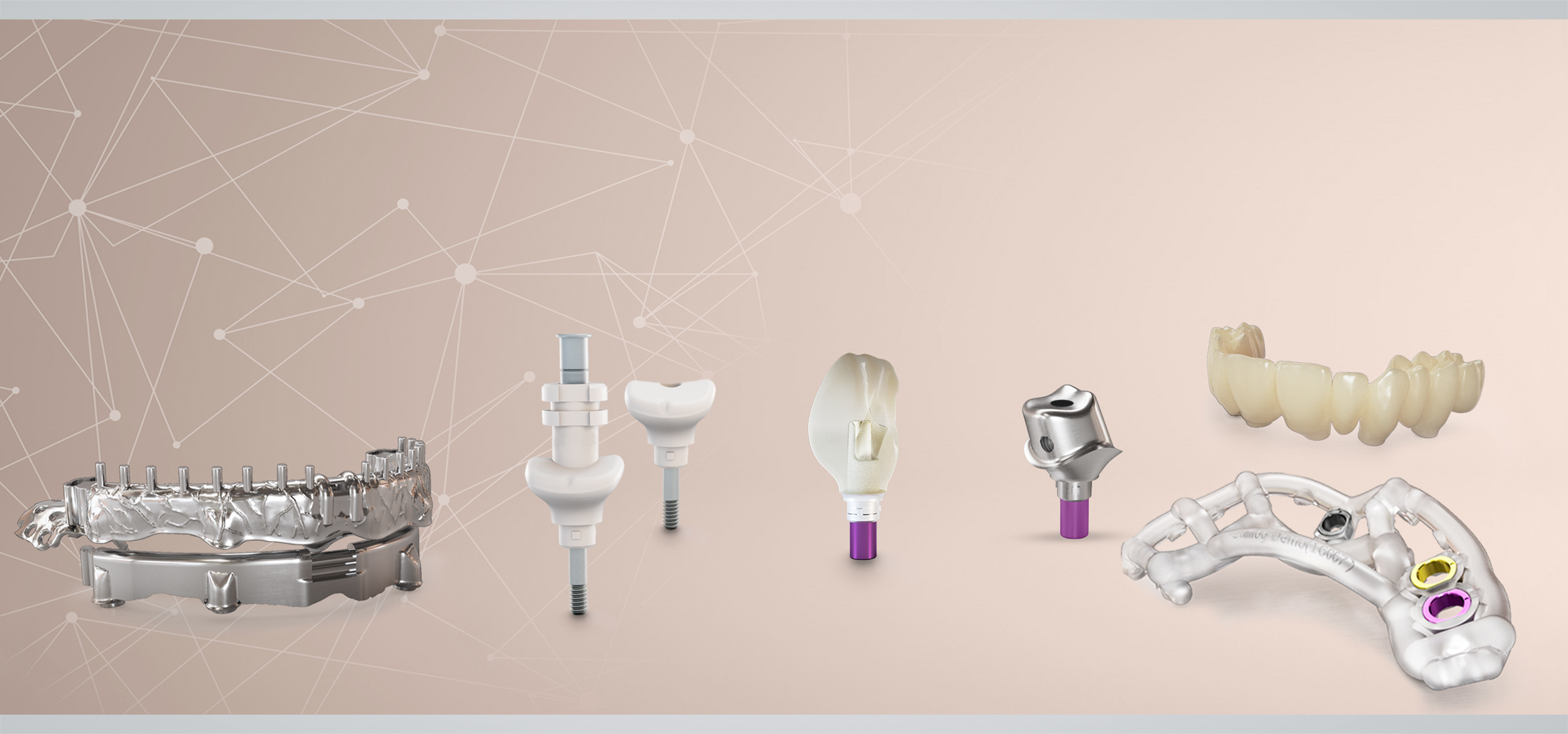 Einteil. Titan-Abutments| Hybridabutments|Hybridkronen|okklusal verschraubte Brücken, Stege und Implantatbasisstrukturen | Stege inklusive Überwürfe | anatomische Kronen und Brücken|Gerüste | ein- und zweiteilige Gingivaformer | Bohrschablonen| gedruckte Modelle