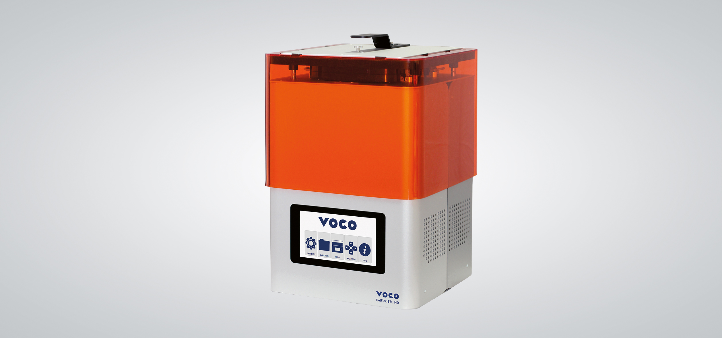 Voco SolFlex vereint hochwertige 3D-Drucktechnologie mit einer umfangreichen Auswahl an zertifizierten dentalen Harzen. Der SolFlex 170 HD nutzt einen auflösungsstarken HD-Beamer, der den Druck feiner, nahezu stufenloser Oberflächenstrukturen ermöglicht. Mit langlebiger DLP UV-Technik wird hochpräzise und zuverlässig eine große Fläche gesamtheitlich belichtet. Der Touchscreen ist intuitiv und lässt sich auch mit Handschuhen bedienen. Das Datenfile kann im Standard-STL-Format einfach per WIFI, LAN oder USB-Stick übertragen werden. Die starre Materialwanne des SolFlex 170 HD macht es möglich, große Mengen hochviskoser Druckharze zu verarbeiten und mehrere massive Objekte, wie sie bei der Modellfertigung zum Einsatz kommen, in einem Druckvorgang sicher und präzise herzustellen.
