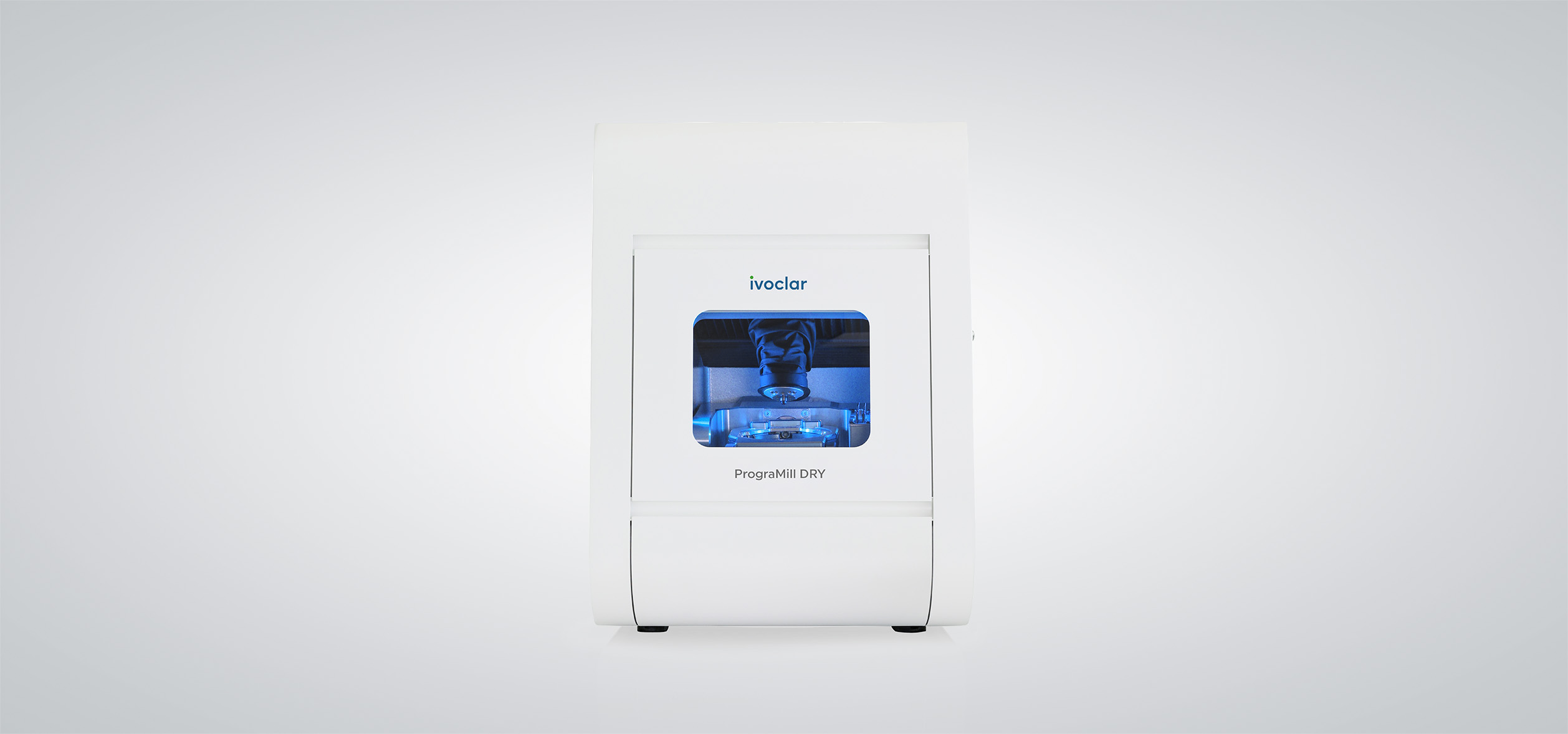 Die PrograMill DRY von Ivoclar ist ein auf Zirkonoxid spezialisiertes 5-Achs-Trockenfräsgerät. Dank ihrer kompakten Bauweise punktet die Maschine mit ihrer Flexibilität und lässt sich platzsparend in jedes Labor integrieren. Durch das integrierte Schnellspannsystem erfolgt der Austausch von Materialscheiben intuitiv und einfach mit nur einer Hand. Zusätzliches Werkzeug ist nicht erforderlich. Der Arbeitsprozess wird signifikant vereinfacht. Die PrograMill DRY ist vollständig in den digitalen Workflow von Ivoclar integriert. Technologie, CAM-Software, Materialien, Handling – alle Prozesse sind perfekt aufeinander abgestimmt. Eine hohe Prozesssicherheit sorgt für Zeitersparnis und verlässliche Fräsergebnisse.