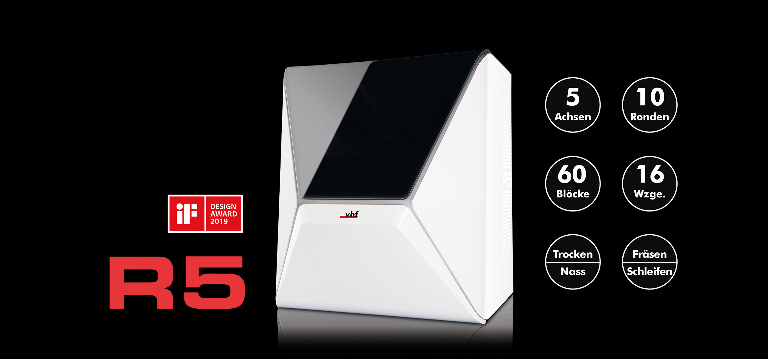 Mit der R5 erleben Labore und Praxislabore eine neue Klasse an Komfort: So sparen sie mit dem automatischen Zehnfach-Materialwechsler, der dank DIRECTDISC Technology werkzeuglos bestückt werden kann, wertvolle Zeit. Durch die DIRECTCLEAN Technology, einem genialen Paket aus Ionisator, Selbstreinigung und Trockner, lässt sich schnell und mühelos zwischen Nass- und Trockenbearbeitung wechseln. So können die verschiedensten Indikationen flexibel und automatisiert bearbeitet werden. Die R5 ist deutsche Maschinenbautechnologie vom Feinsten auf einer minimalen Standfläche, die auch im kleinsten Labor Platz findet. Und das alles mit maximalem Komfort – wie es sich für das Spitzenmodell der HIGH END CLASS gehört.