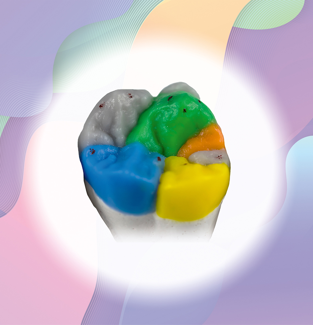 Der Okklusale Kompass und die Naturgemäße Aufwachstechnik „NAT“ mittels der Modellierwachse mit Farbcode geben uns einen nachvollziehbaren Leitfaden, nach dem wir systematisch unsere herzustellenden Restaurationen richtig funktionell aufbauen und fertigen können. Dies fördert die in Theorie erlernte Methodik und kann schon nach kurzer Zeit in den alltäglichen Arbeitsprozess einfließen. In den Abbildungen 03.1 bis 03.5 findet ihr eine kleine Übersicht der Naturgemäßen Aufwachstechnik „NAT“ mittels des Okklusalen Kompasses.