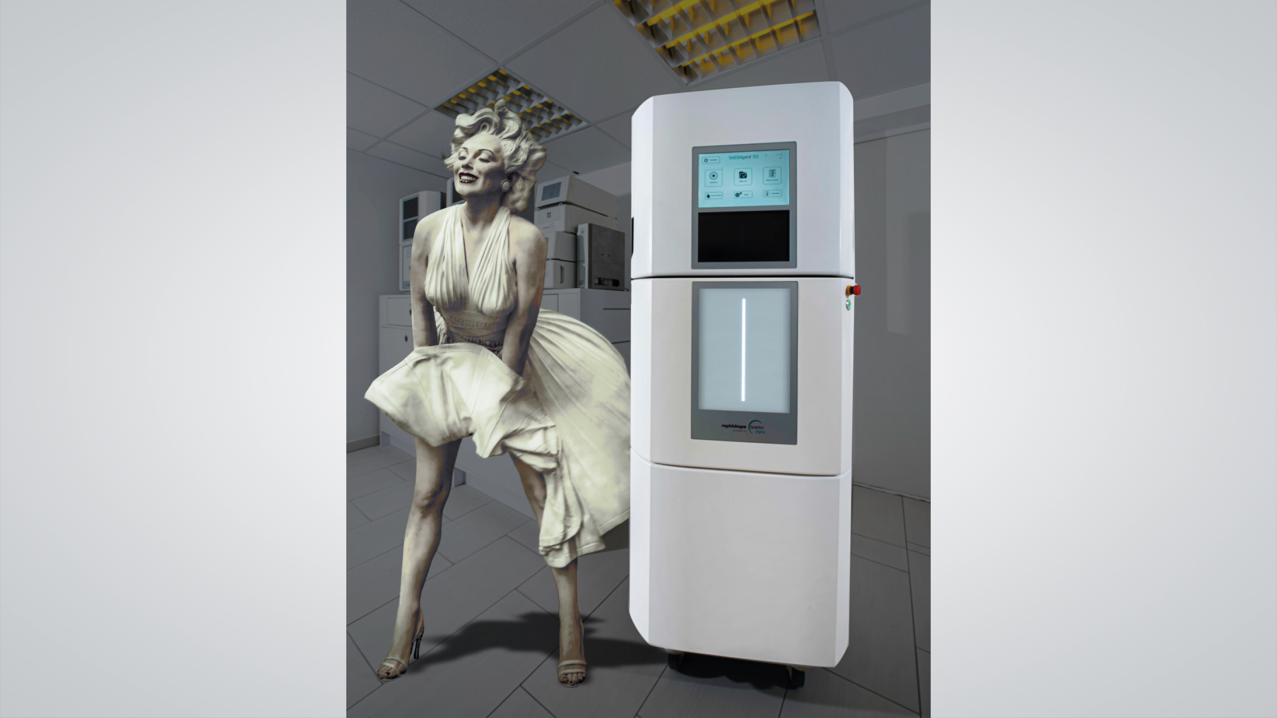 Was Marilyn Monroe und der neue 3D-Drucker Sheraprint 50 gemeinsam haben? 166 Zentimeter Größe. Während der Filmstar im Scheinwerferlicht strahlte, glänzt Sheraprint 50 mit einer langlebigen LED und ganz viel Printpower. Der DLP-Drucker ist konzipiert für den professionellen Einsatz in der Dentaltechnik, wenn es zum Beispiel um die Massenproduktion von Modellen geht.