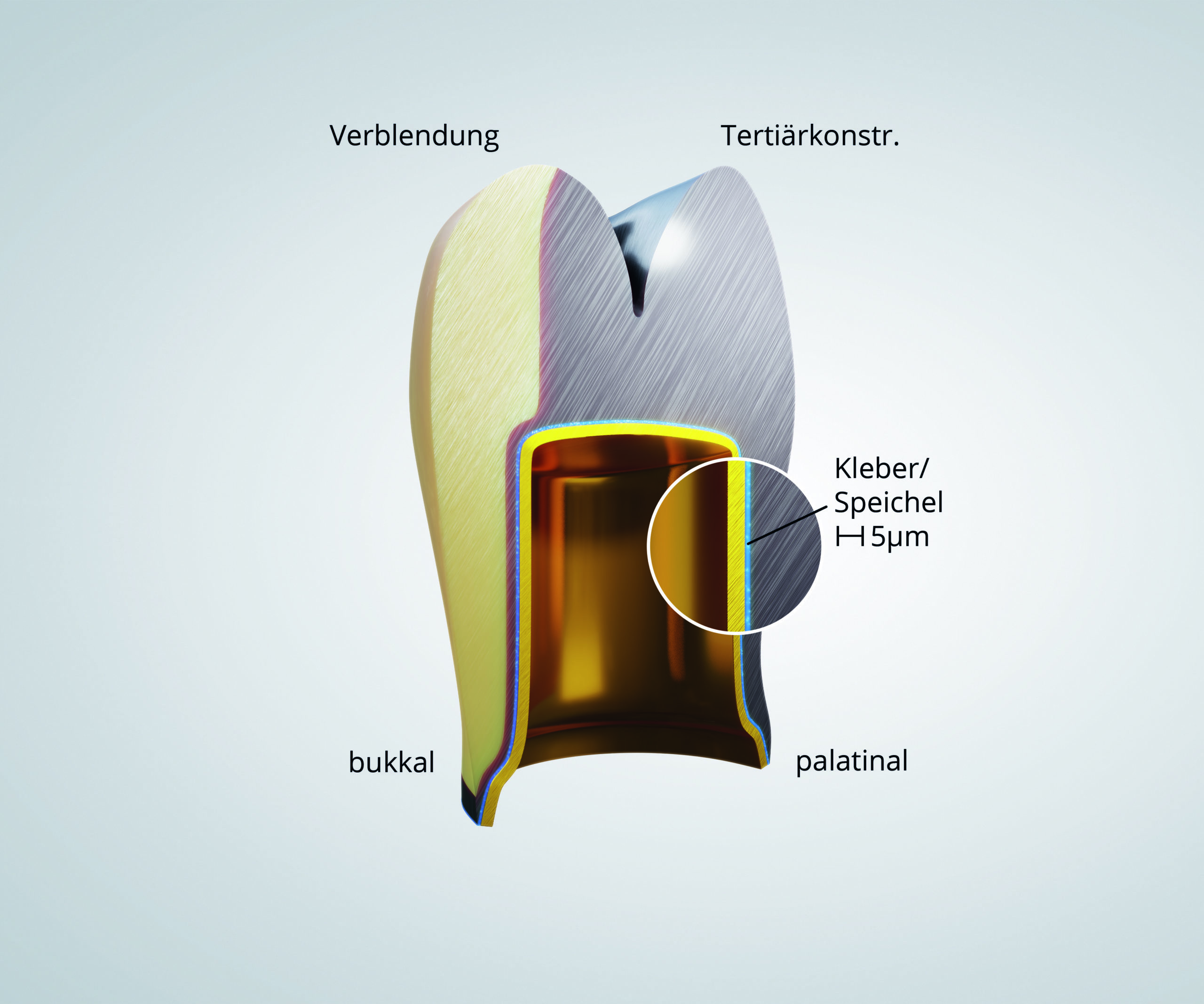 Adhäsion, Doppelkronentechnik, Galvanisieren, Galvano-Doppelkrone, Galvanoforming, Gefüge, Gold, Kohäsion