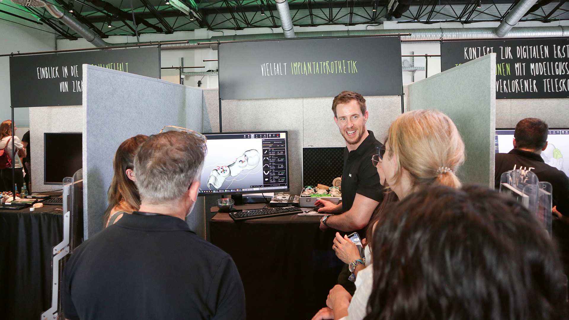 Die limitierten Plätze für die Pre-Session am Vormittag waren bereits im Vorfeld schnell vergriffen. Kein Wunder, denn dort war einmal rundum die neueste Hard- und Software aus der Zirkonzahn-Schmiede zum Anfassen und Ausprobieren aufgebaut. Produkt-Experten mit zahntechnischer Expertise machten an elf Stationen Zahnheilkunde im digitalen Zirkonzahn-Workflow mit allen Sinnen erlebbar. Sie erläuterten das Prozedere am Patienten, gaben Tipps zur Umsetzung im Praxis- beziehungsweise Laboralltag und standen Rede und Antwort unter dem Motto „fragt mich aus und ich zeige euch wie‘s geht“.