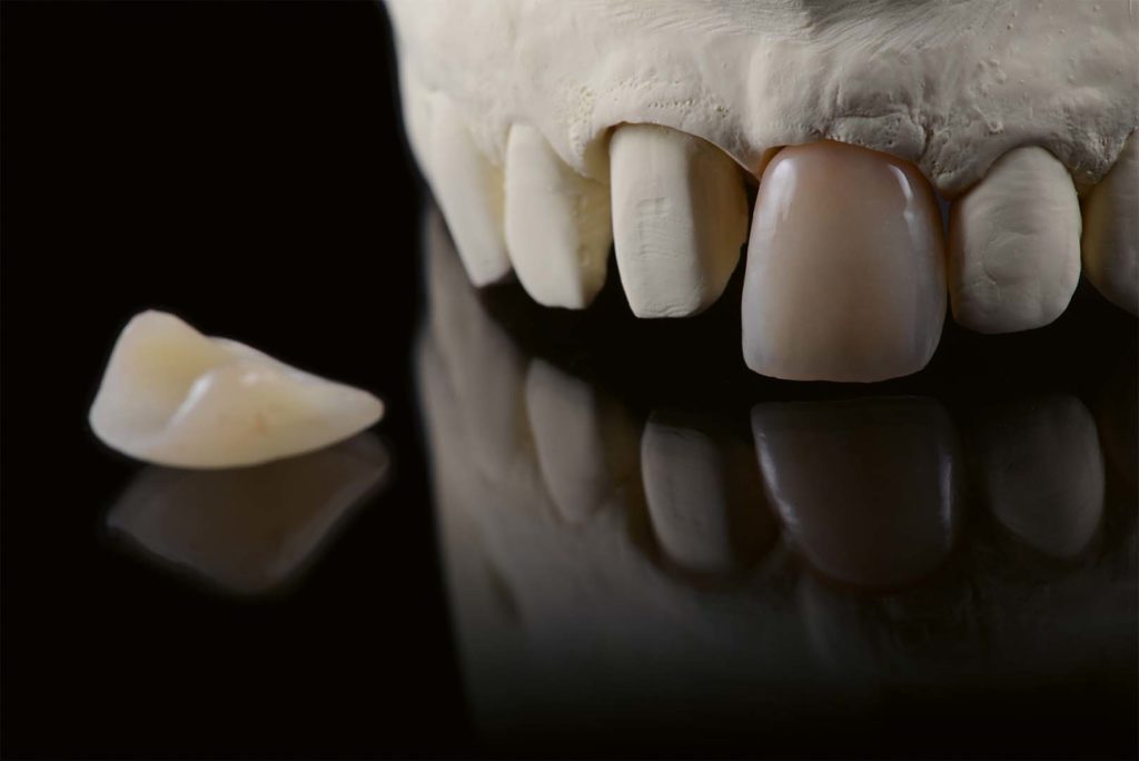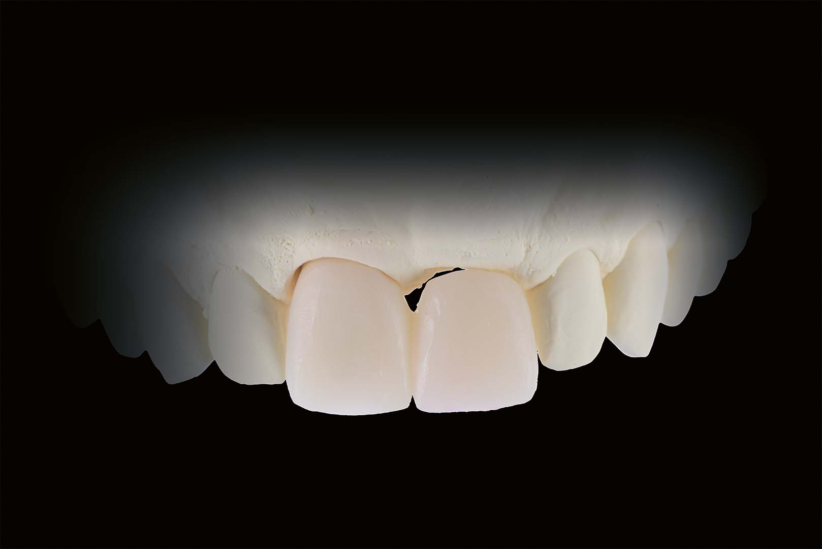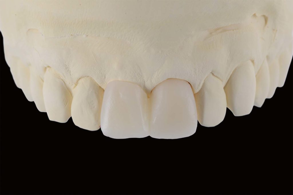 Veneer 21 auf feuerfestem Stumpf geschichtet und Verblenden des Zirkonoxidabutments regio 11 mit einer Keramik für Zirkonoxid (analog Fall 1)
