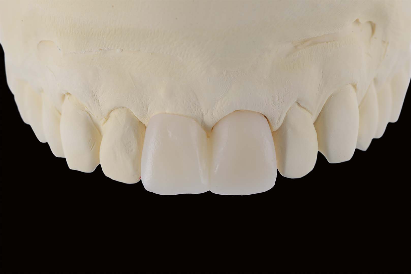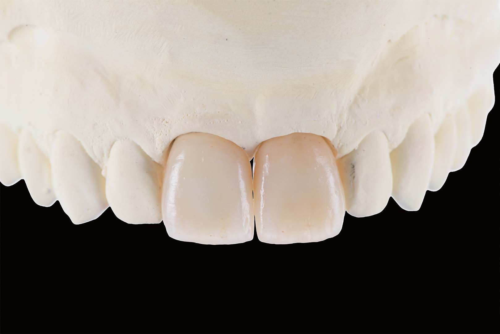 Grundsätzlich basiert der Erfolg der implantatprothetischen Rekonstruktion immer auf der biologischen Osseointegration des Implantats, der adäquaten Weichgewebeausformung und der ästhetisch-funktionellen Integration der Implantatkrone. In beiden vorgestellten Fällen galt es, eine „doppelte Versuchung“ zu erfüllen. Zusätzlich zur ohnehin schon großen Herausforderung „Implantat im Frontzahnbereich“ erschwerte die Kombination mit einem Veneer die Situation. Ohne das Einbeziehen des Nachbarzahns in die prothetische Rekonstruktion wäre das ästhetische Ergebnis kompromissbehaftet gewesen. In Absprache mit dem Patienten sollte bei hohen ästhetischen Ansprüchen der konsequente Weg gegangen und – wenn notwendig – sollten Nachbarzähne auf minimalinvasivem Weg in die Rekonstruktion einbezogen werden. Für den Zahntechniker gilt es in solchen Fällen eine möglichst einheitliche Basis für die ästhetische Umsetzung zu schaffen.