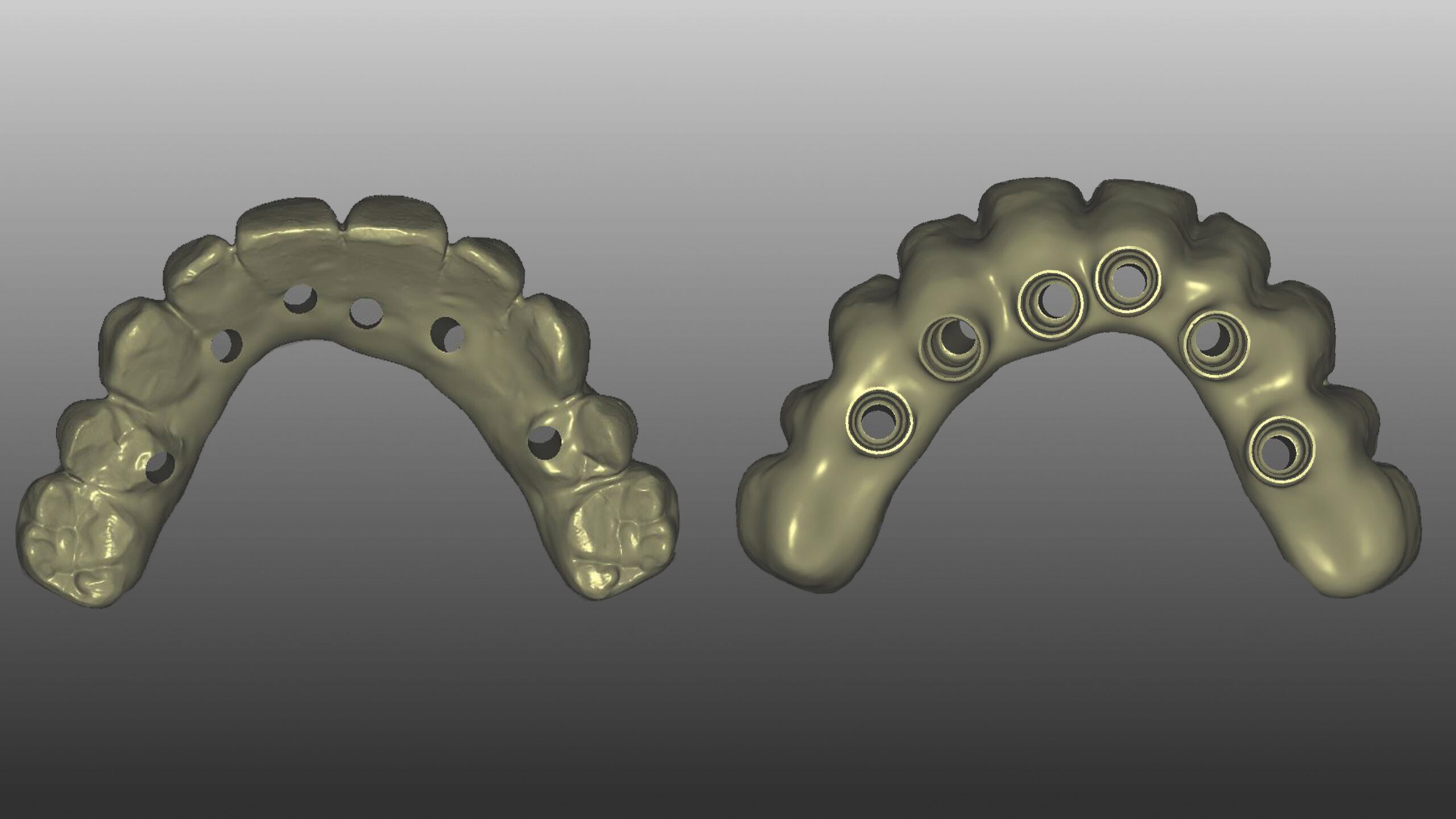 Das farbtreue und polychromatische Zirkondioxid Vita YZ STMulticolor war die Grundlage, um mit minimalen Individualisierungen eine hochästhetische implantatprothetische Versorgung entstehen zu lassen. Im Zahnbereich reichten nach der Sinterung nur minimale Charakterisierungen aus. Schlüssel dafür war die Konzentration auf Zahnform und Textur im vestibulären Bereich. Die manuelle Arbeit kann schnell und einfach im Kreidestadium umgesetzt werden. Die statischen und dynamischen Funktionsbereiche wurden konsequent monolithisch gefertigt, so dass das in der Implantatprothetik gefürchtete Chipping verhindert wird, ohne irgendwelche ästhetischen Kompromisse eingehen zu müssen. Da die Verbinder stärker als bei vollverblendeten Gerüsten designt werden können, senkt das gleichzeitig auch das Frakturrisiko für die Gesamtkonstruktion. Implantatprothetische Gerüste komplett zu verblenden, gehört damit der Vergangenheit an. Zudem rücken das künstlerische Talent und die persönliche Tagesverfassung in den Hintergrund, da die Zähne sozusagen schon im Rohling stecken. Die Bilder der lebensechten und robusten Rehabilitation sprechen für sich.