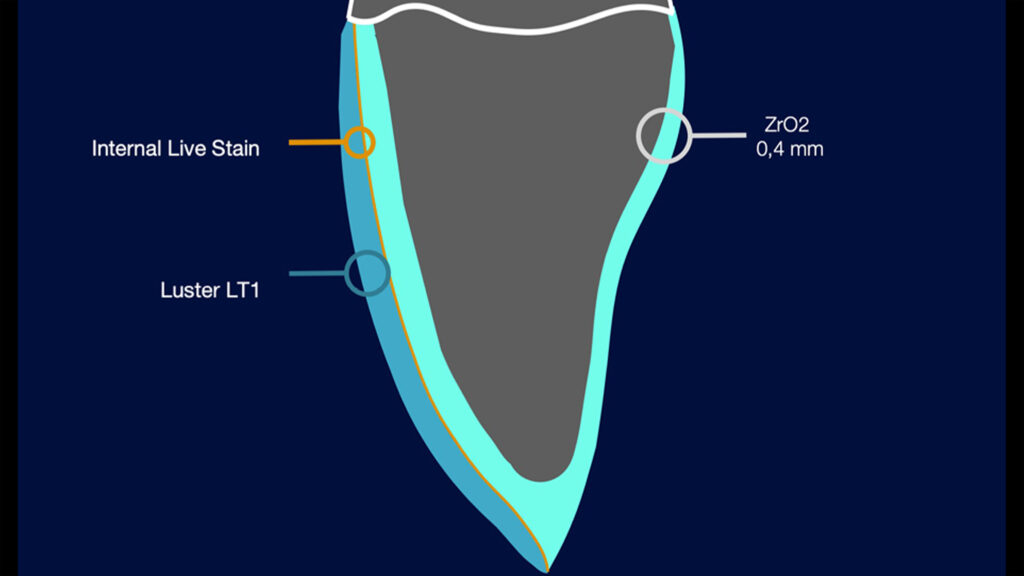 … und Cerabien ZR Internal Stain plus Lustre Porcelain, was zu hochästhetischen Ergebnissen führt.