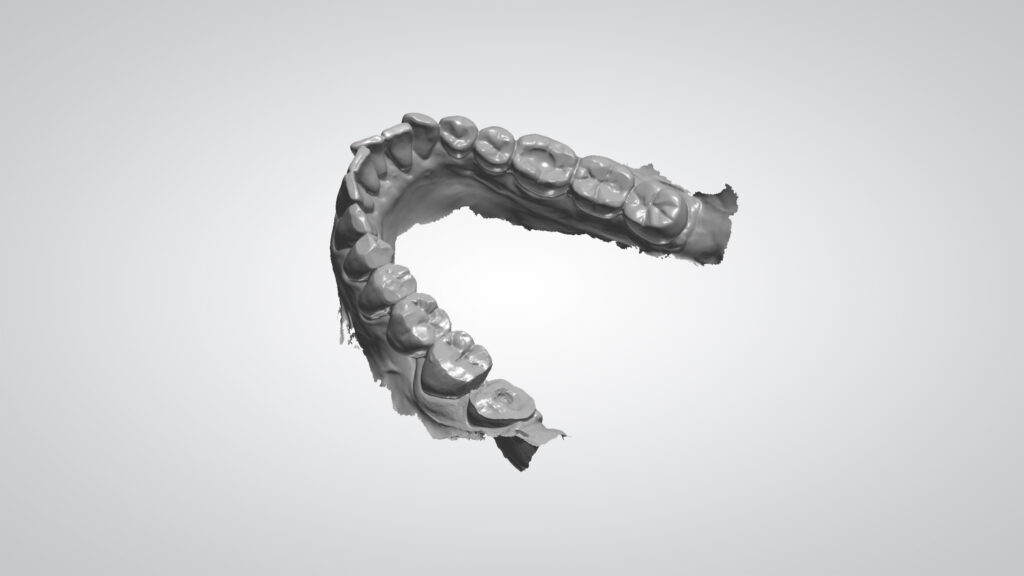 01 - STL-Datensatz aus dem Intraoralscanner für das Herstellen von vier Kronen im oberen Molarenbereich