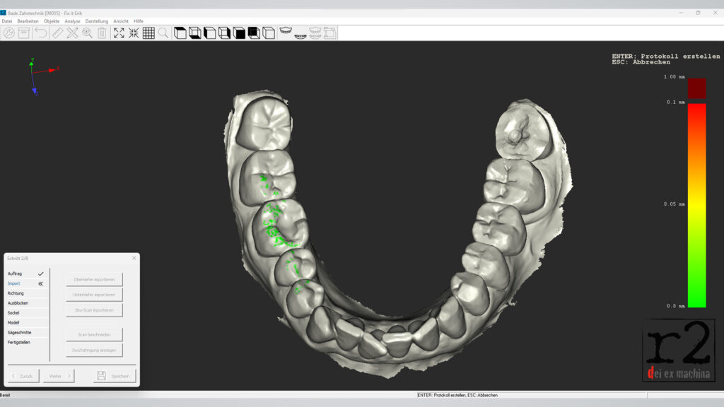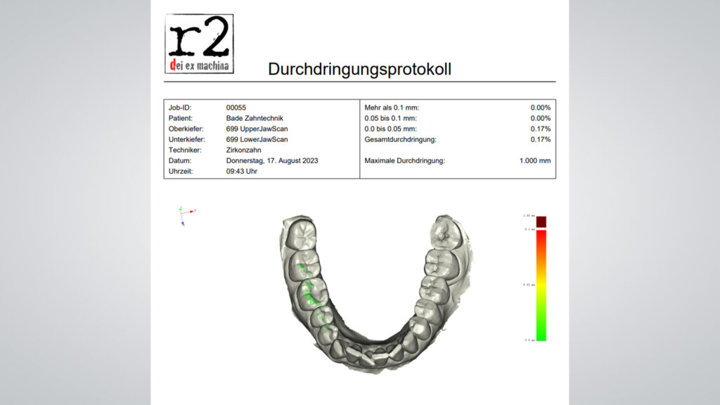 03 - Durchdringungsprotokoll, welches beispielsweise auch der Zahnarztpraxis übersendet werden kann.