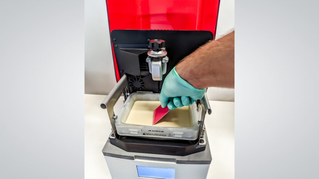 Bade: Der Asiga Max überzeugt durch eine Vielzahl von Argumenten, die ihn für uns zur ersten Wahl für den 3D-Druck machen. Signifikanter Pluspunkt ist die komfortable Desktop-Größe, die sich ideal in unser Laborumfeld einfügt. Ein weiterer entscheidender Vorteil ist die Flexibilität: Der Asiga Max UV kann eine große Menge von validierten Werkstoffen drucken und ist komplett offen in der Anwendung. Der zugehörige Composer ist benutzerfreundlich – er ist übersichtlich und intuitiv in der Handhabung. Durch die fortschrittliche SPS (Smart-Positioning-System) Technologie des Druckers können wir zudem die Druckgeschwindigkeit erhöhen. Hinzu kommt das schnelle Wechseln der Wannen durch eine praktische Wannen-Halterung sowie die zügige Kalibrierung der Bauplattform. Ebenfalls ein Fürsprecher ist die Tatsache, dass sich der Asiga Max UV über die Jahre dank Software-Updates stets an neue Werkstoffe und Anwendungsbereiche angepasst hat, ohne dass ein Wechsel der Hardware notwendig war.