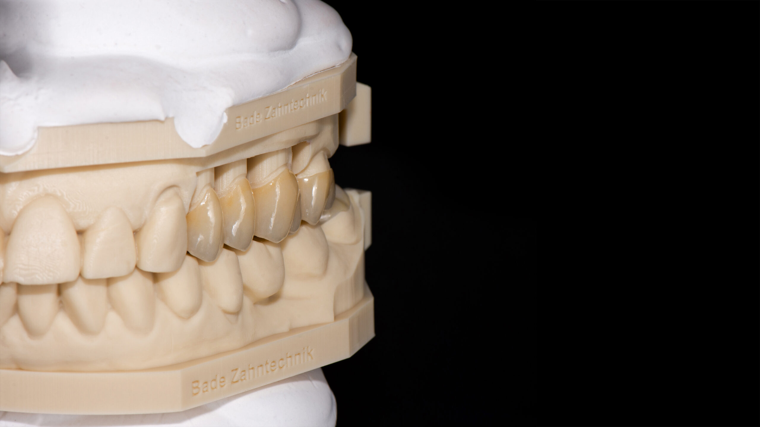 Bade: Ein besonders überzeugendes Merkmal für das Modell-Material Nyte3D High-Contrast ist der ausgezeichnete Kontrast, der beim Schichten von Keramik und bei der Erstellung der Morphologie und Oberflächenstruktur von Kronen hilfreich ist. Ein weiterer Pluspunkt ist, dass wir durch den Einsatz dieses Materials im Falle eines Modellscans (z. B. im Artikulator zur Neufixierung der Modelle nach Feinjustierung) kein Scan-Spray mehr benötigen. Durch die hohe Lichtempfindlichkeit reduziert sich die Belichtungszeit pro Druckschicht, was zusätzlich die Gesamt-Druckzeit reduziert und die Belichtungseinheit des Druckers schont. Des Weiteren zeichnet sich das Material durch eine flüssigere Konsistenz aus, wodurch wir deutlich weniger Materialrückstände vor dem Waschen der Modelle haben. Wenn wir mit einer Präzision von 50 µm drucken, erhalten wir eine exakte Darstellung der Präparationsgrenzen und es entsteht ein nur minimaler Reinigungsaufwand nach dem Drucken. Das Material selbst ist sehr hart und dabei nicht spröde, was für Langlebigkeit und Zuverlässigkeit spricht. Schließlich hat uns überzeugt, dass die Werkstoffeigenschaften und Farben auch nach längerem Zeitraum stabil bleiben und keine Veränderungen aufweisen.