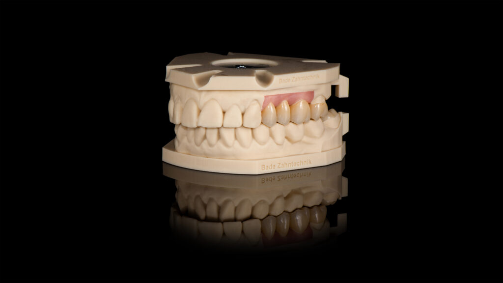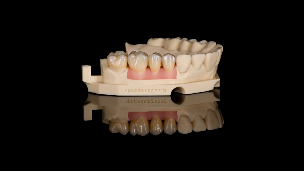Bade: Die Integration einer Zahnfleischmaske hilft dabei, die Rot-Weiß-Ästhetik besser zu steuern und zu visualisieren, was insbesondere bei ästhetischen Restaurationen von Bedeutung ist. Sie bietet außerdem einen hervorragenden Kontrast, der das Arbeiten erleichtert und für die Augen angenehmer ist. Rein optisch hinterlässt ein Modell mit Zahnfleischmaske zudem einen professionelleren, hochwertigeren Eindruck. Hinzu kommt, dass das von uns verwendete Gingivamaterial (Nyte3D Gingiva) sich schnell und unkompliziert drucken, sowie sich mühelos beschneiden und fräsen lässt. Die Integration einer Zahnfleischmaske trägt somit maßgeblich zur Optimierung unserer Arbeitsprozesse und zur Qualitätssteigerung unserer Modelle bei.